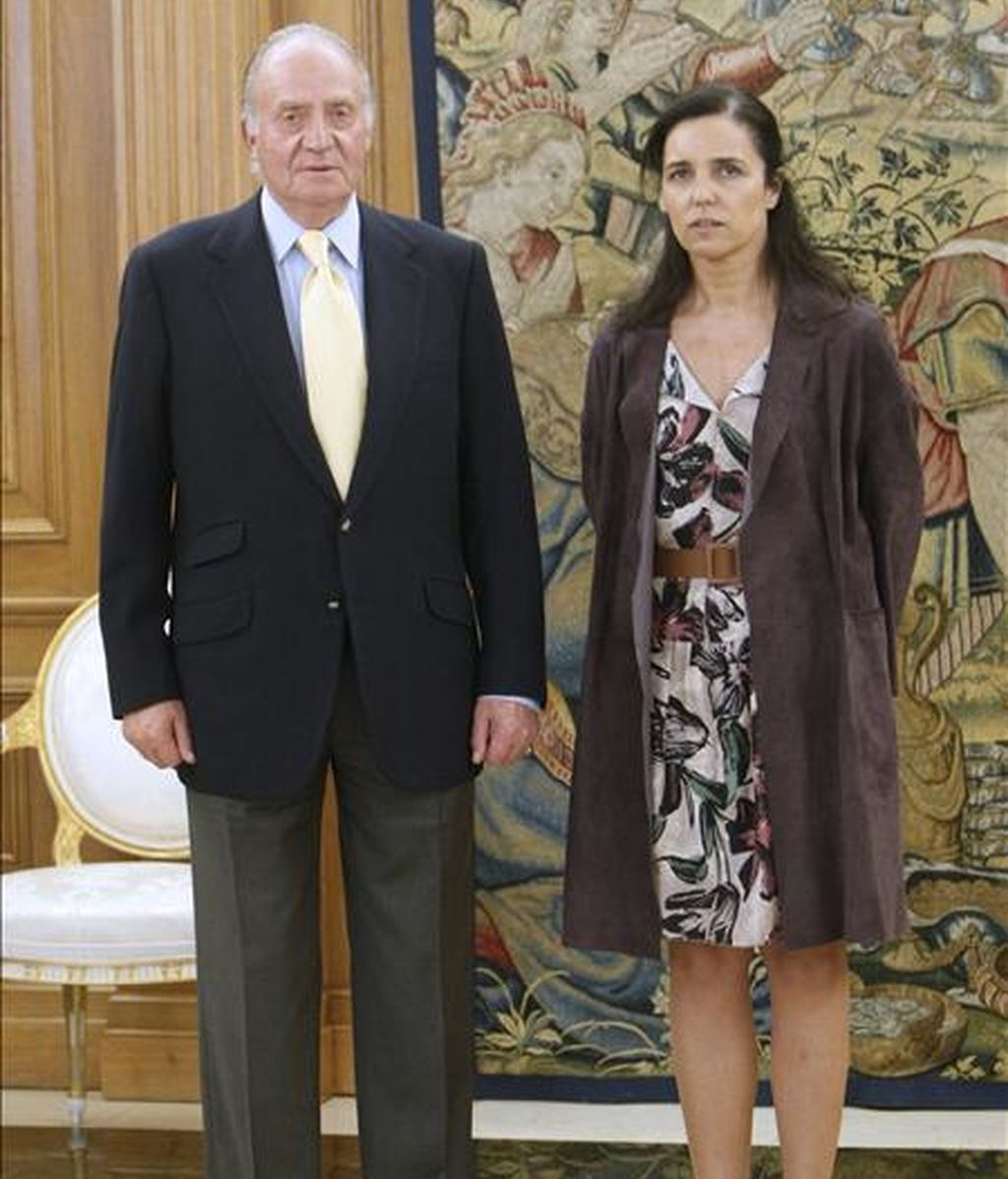 El rey Juan Carlos recibió hoy en audiencia en el Palacio de la Zarzuela a la presidenta del Parlamento de Galicia, Pilar Rojo, quien comunicó a la Casa Real la elección por el Parlamento de Galicia de Alberto Núñez Feijóo como presidente de la Xunta. EFE