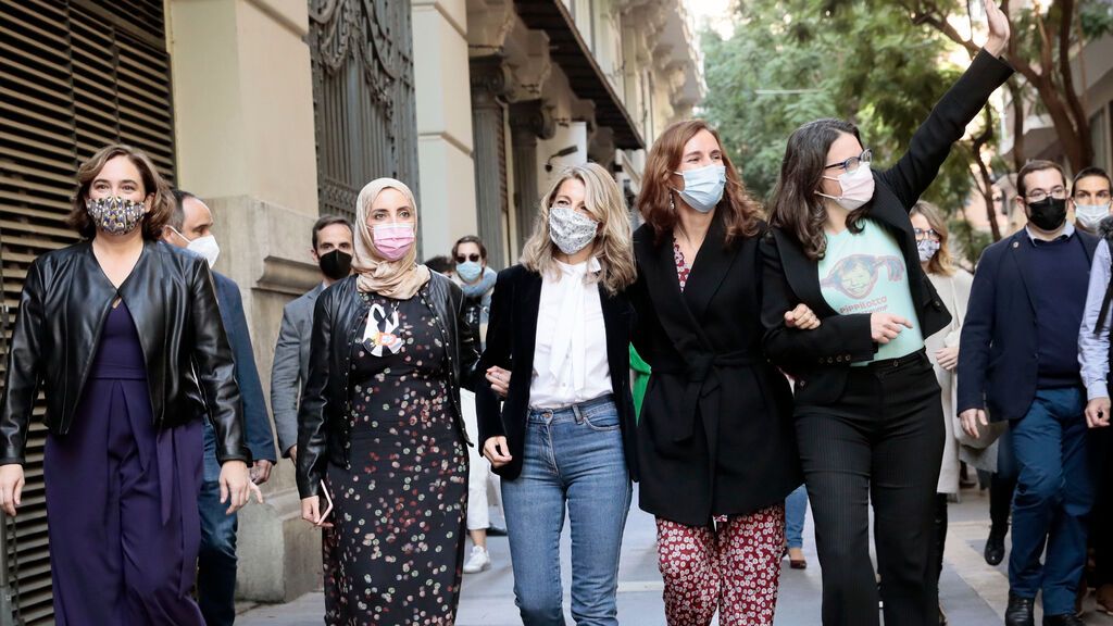 La vicepresidenta del Gobierno, Yolanda Díaz, la alcaldesa de Barcelona, Ada Colau; la vicepresidenta de la Generalitat Valenciana, Mónica Oltra, la portavoz de Más Madrid, Mónica García, y la portavoz del Movimiento por la Dignidad y la Ciudadanía en Ceuta, Fátima Hamed Hossain, han intercambiado este sábado ideas desde sus respectivos liderazgos femeninos con una visión "serena" de la política.