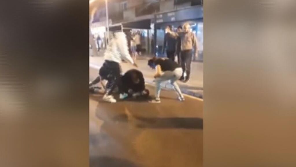 Momento en el que varias personas retienen a un implicado en la muerte de un hombre en Salou