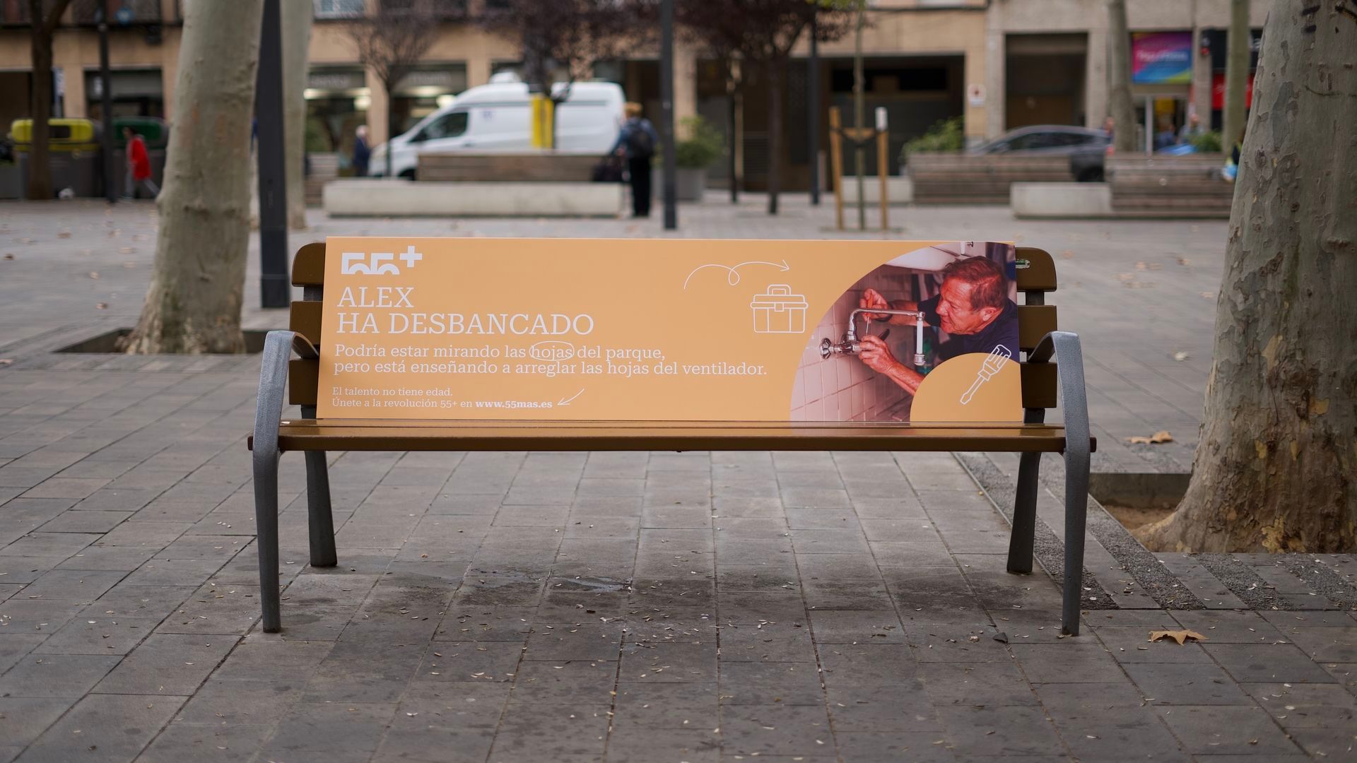Cada banco representa a alguien: un profesional que sigue activo, una vecina que enseña a coser, un jubilado que cuida de su nieta o da clases de francés en su barrio. Porque eso es lo que hace la Plataforma 55+, conectar talento senior con su entorno para ofrecer servicios útiles y recuperar la vida activa en los barrios.