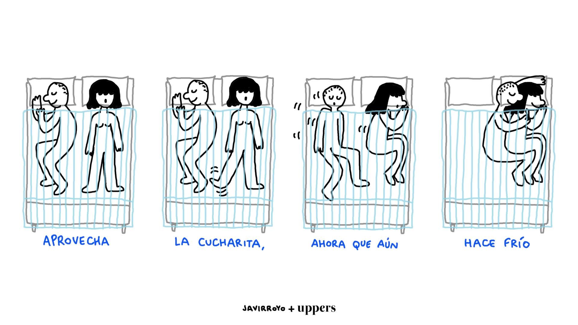 Es lo que tiene la primavera: que de repente hace calor, como de pronto te llega otra ola de frío polar que nos deja heladas. Bueno, pues aprovechemos estos días de frío para practicar la cucharita, que luego en verano no hay quien se pegue a otro cuerpo. ¿No os parece?