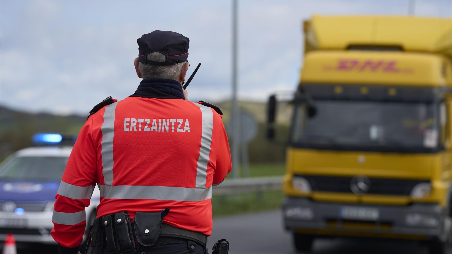 Agente de la Ertzaintza realizando un control de tráfico en Euskadi.