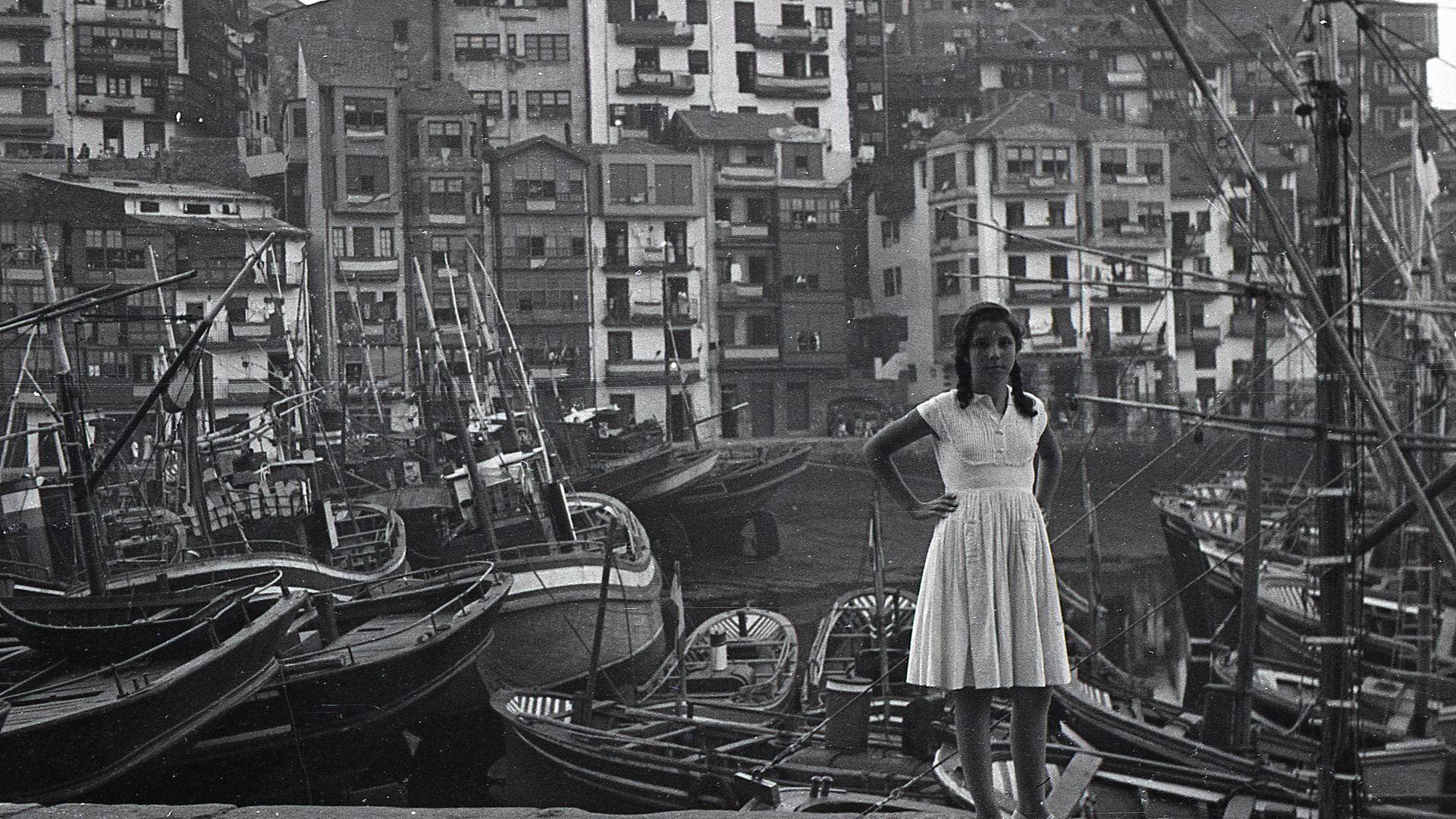 Con trenzas y un vestido blanco, sola o acompañada de un hombre o de una mujer, la enigmática jovencita es el “hilo conductor” de este viaje por tierras vascas: “Mi intuición me dice que las fotos se realizaron durante un viaje turístico aprovechando su estancia en Euskadi a donde vinieron a un funeral”. Una teoría que el propia Hibai se cuestiona al recordar que las fotografías se tomaron en dos veranos distintos, el de 1955 y 1957.