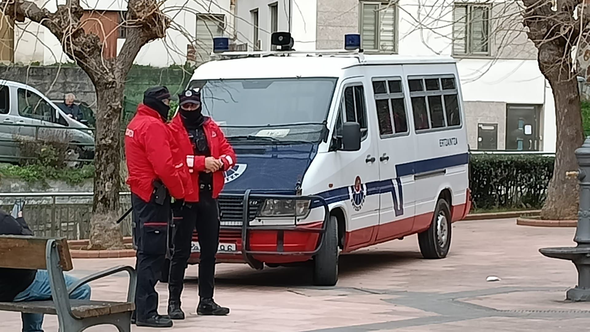 Dos agentes de la Ertzaintza junto a una furgoneta en Bilbao
