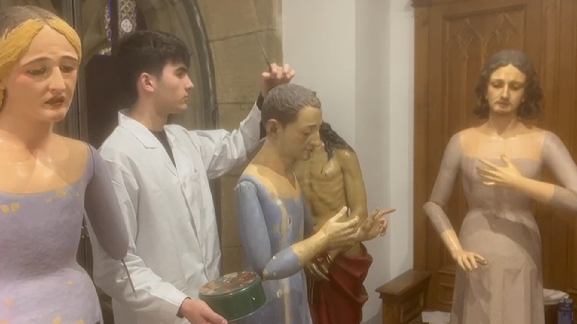 De vuelta a lo que está pasando en San Sebastián, tres veinteañeros que el 3 de abril, Viernes Santo, saldrán de la Catedral del Buen Pastor con tres pasos recuperados de la última procesión que se celebró hace 59 años, relatan como están viviendo esta experiencia y si perciben un repunte de la religiosidad entre los de su edad, un 'revival' católico al que algunos creen que han contribuido artistas como Rosalía e incluso películas como ‘Los Domingos’.