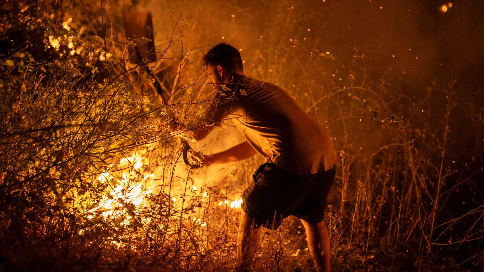 Una persona realiza labores de extinción en el incendio forestal de A Rúa. EFE
