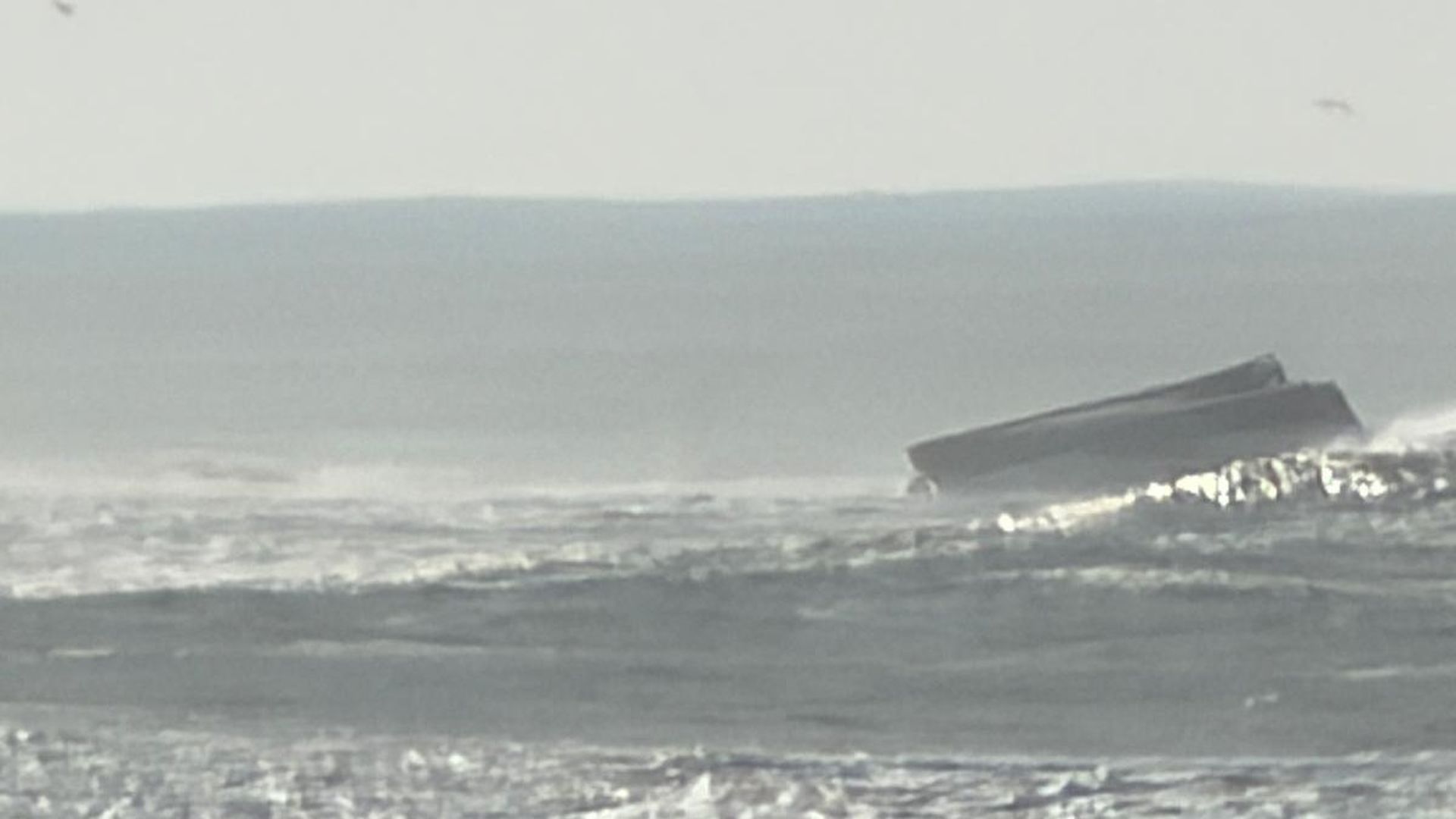 Pesquero volcado en la desembocadura del río Miño