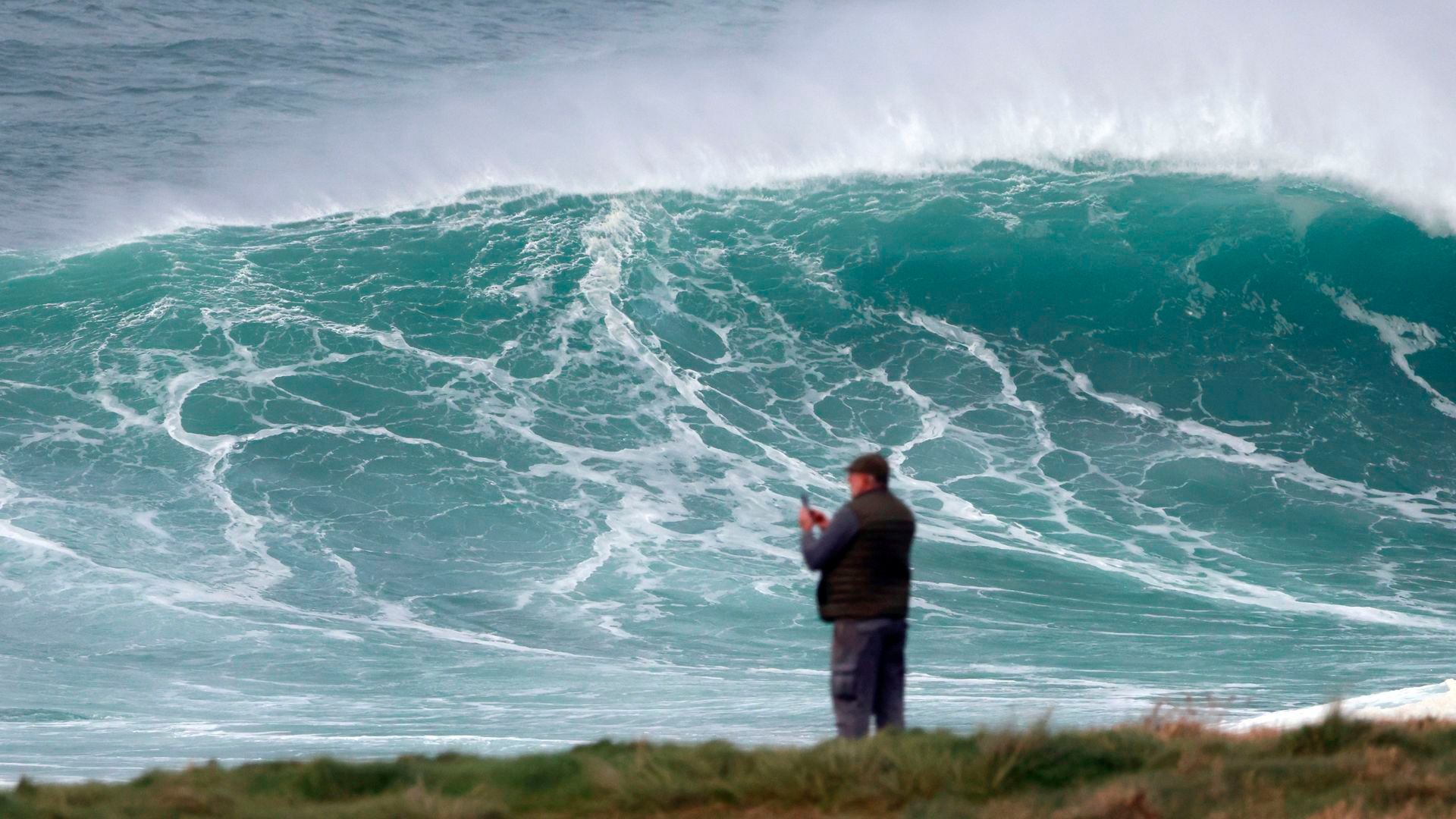 Una persona mira el gran oleaje que sufre la costa noroeste de Galicia. EFE