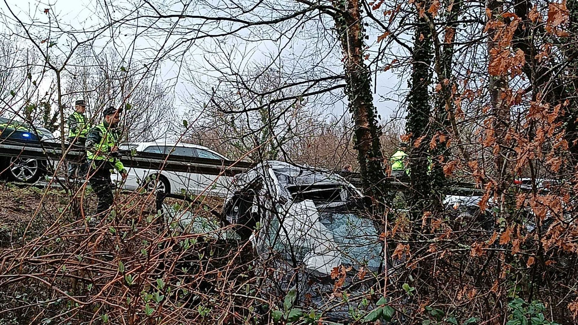 Algunos de los vehículos acabaron cayendo por un terraplén tras el impacto. Atlas Galicia