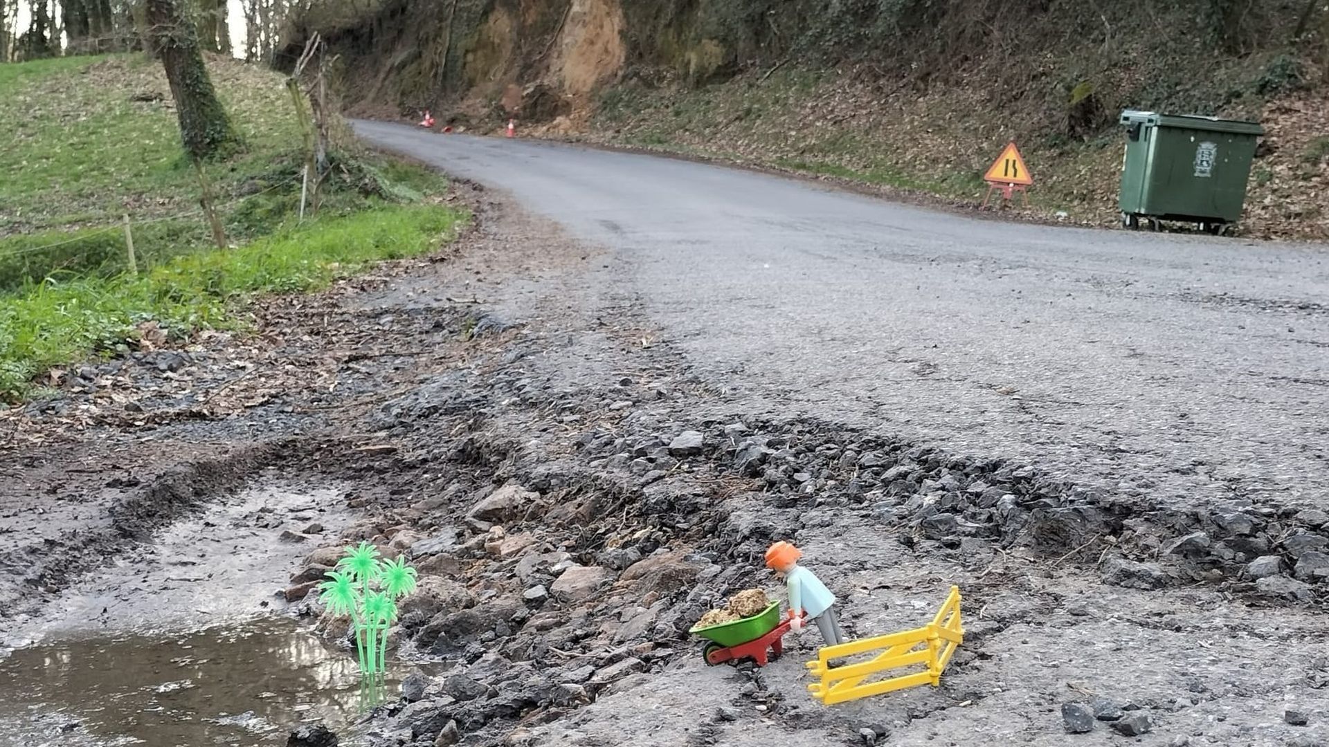 Ante la falta de respuestas, han tirado de ingenio para que les arreglen las carreteras del pueblo