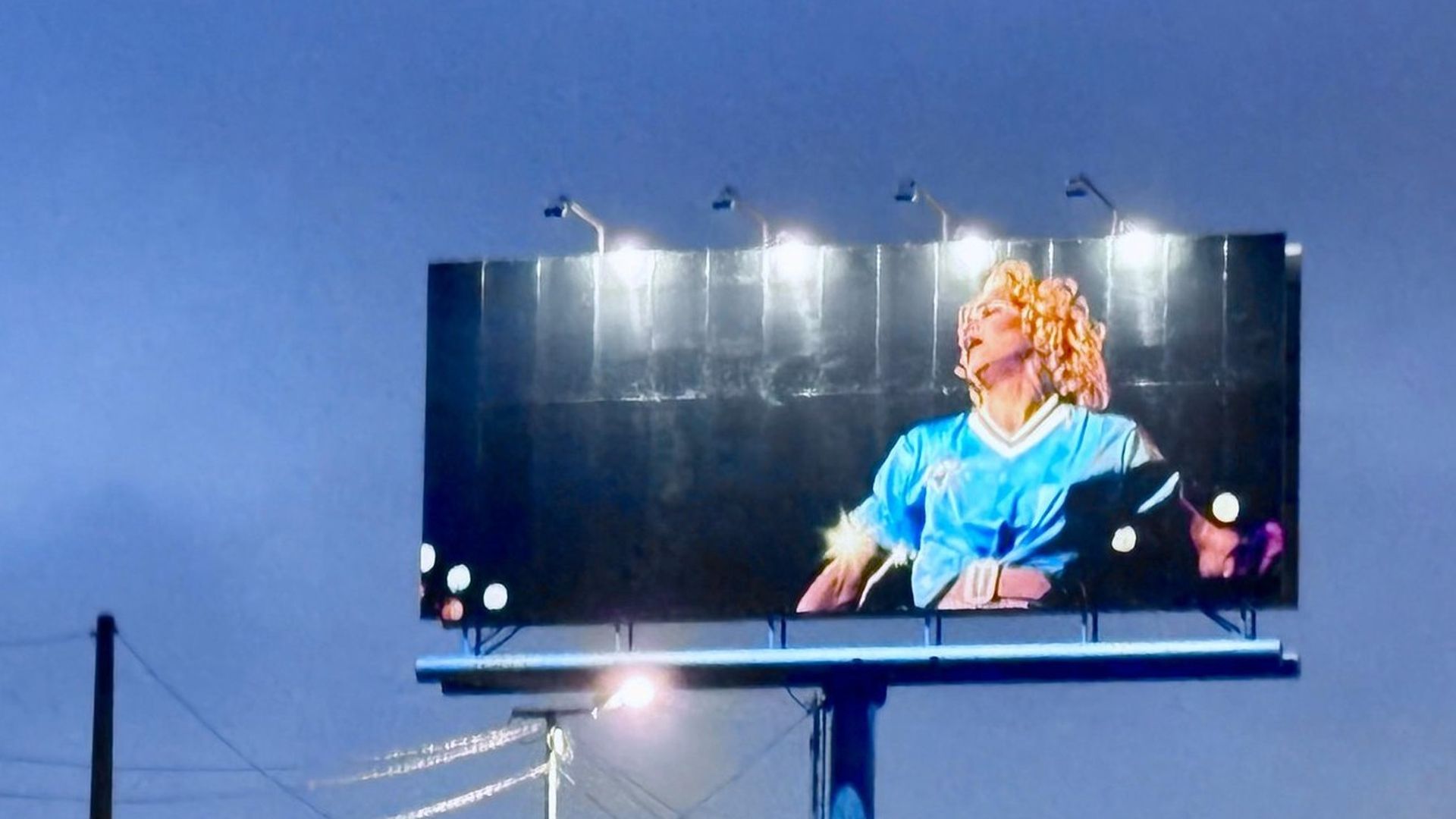 Mientras tanto, para recordarlo, el club ha instalado una enorme valla a la entrada de la ciudad con la imagen de la cantante llevando la camiseta celeste aquella noche, captada por el fotógrafo Víctor de las Heras.