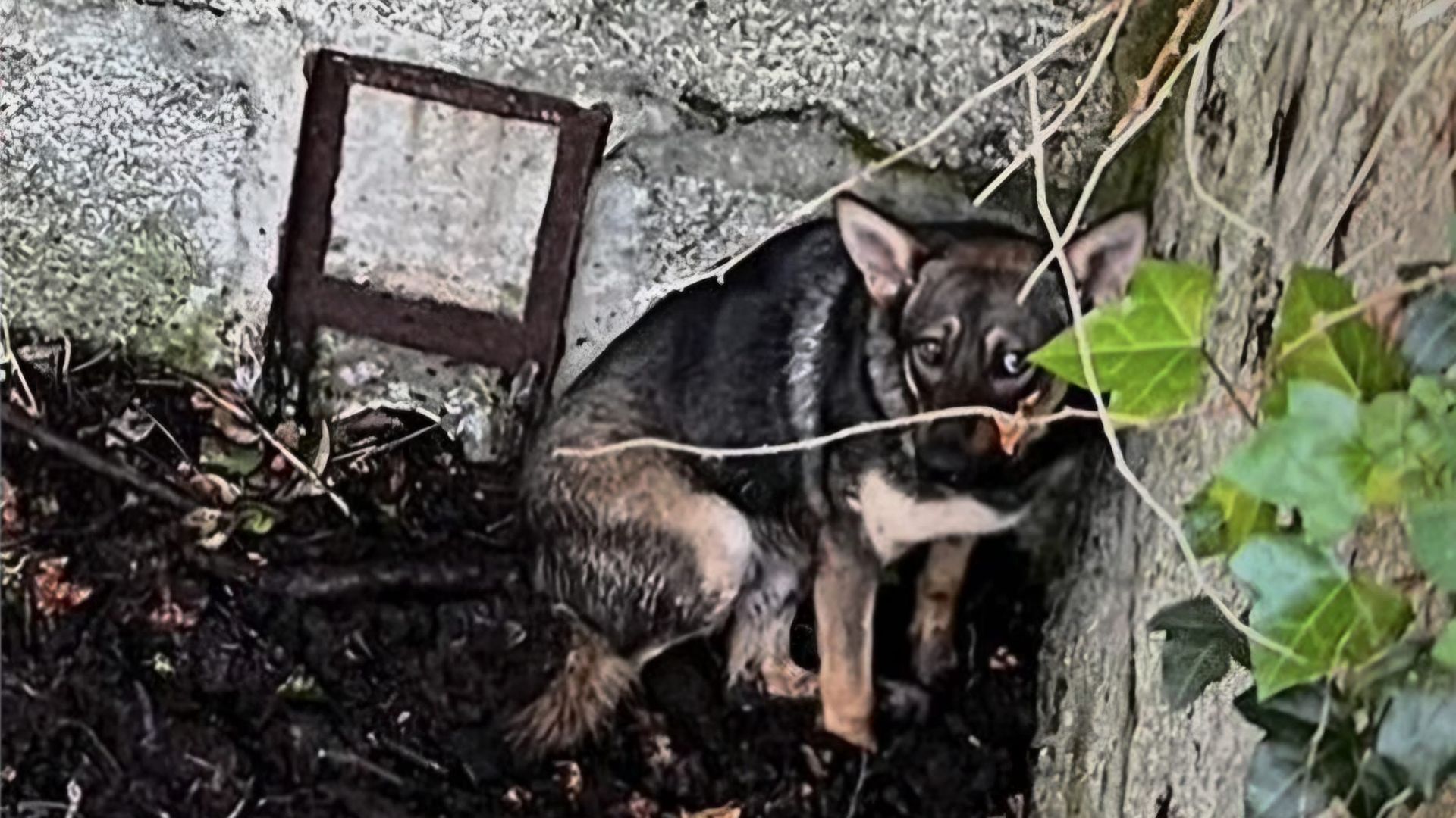 Unos adolescentes encontraron al perro en una antigua fosa y le pusieron una rampa para que intentara salir