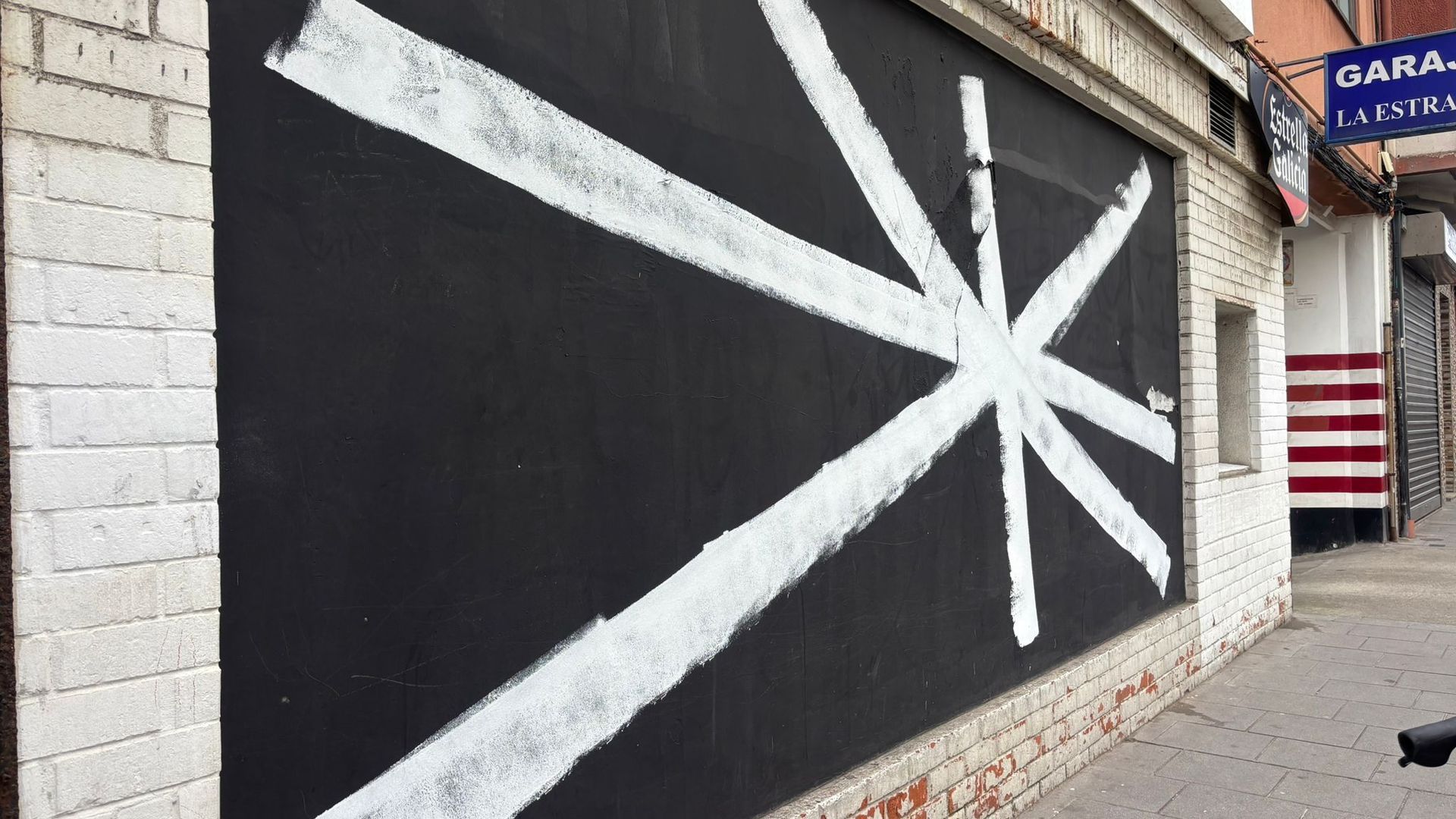 Aunque en las últimas horas han aparecido en el barrio de Monte Alto, estos asteriscos misteriosos también han surgido en otras zonas de la ciudad, como la calle del Orzán, la Barrera o la calle Alta, principalmente en bajos vacíos o donde no hay actividad. Uno de los últimos en aparecer es un enorme asterisco blanco en las paredes del antiguo pub Grietax, en el Orzán.