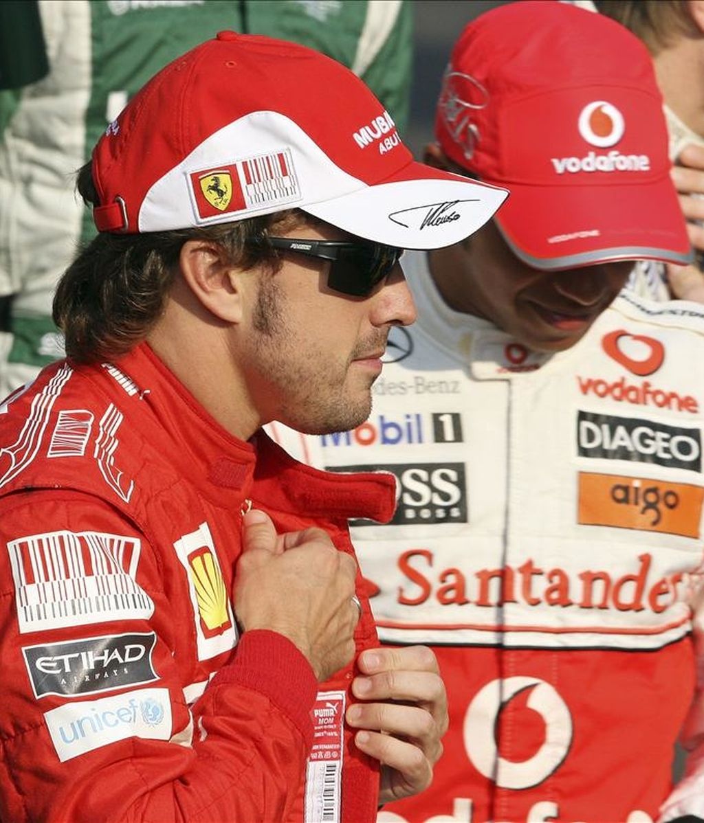 El piloto español de Ferrari, Fernando Alonso (i), y el británico de McLaren Mercedes, Lewis Hamilton. EFE/Archivo