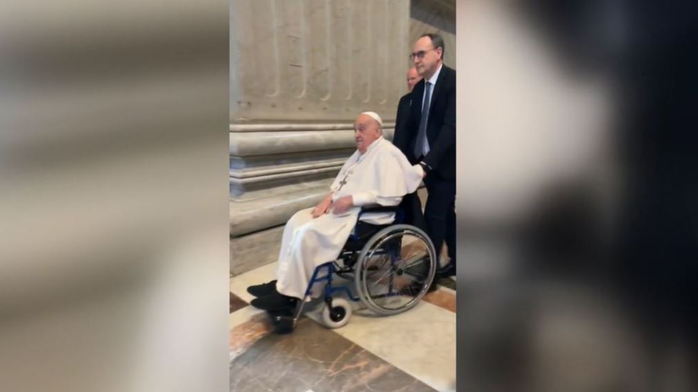Jorge Mario Bergoglio, de 88 años, que se encuentra convaleciente de la infección respiratoria por la que estuvo ingresado 38 días en el Hospital Gemelli de Roma, hasta el pasado 23 de marzo, ha aparecido en silla de ruedas y sin las cánulas nasales para el oxígeno.