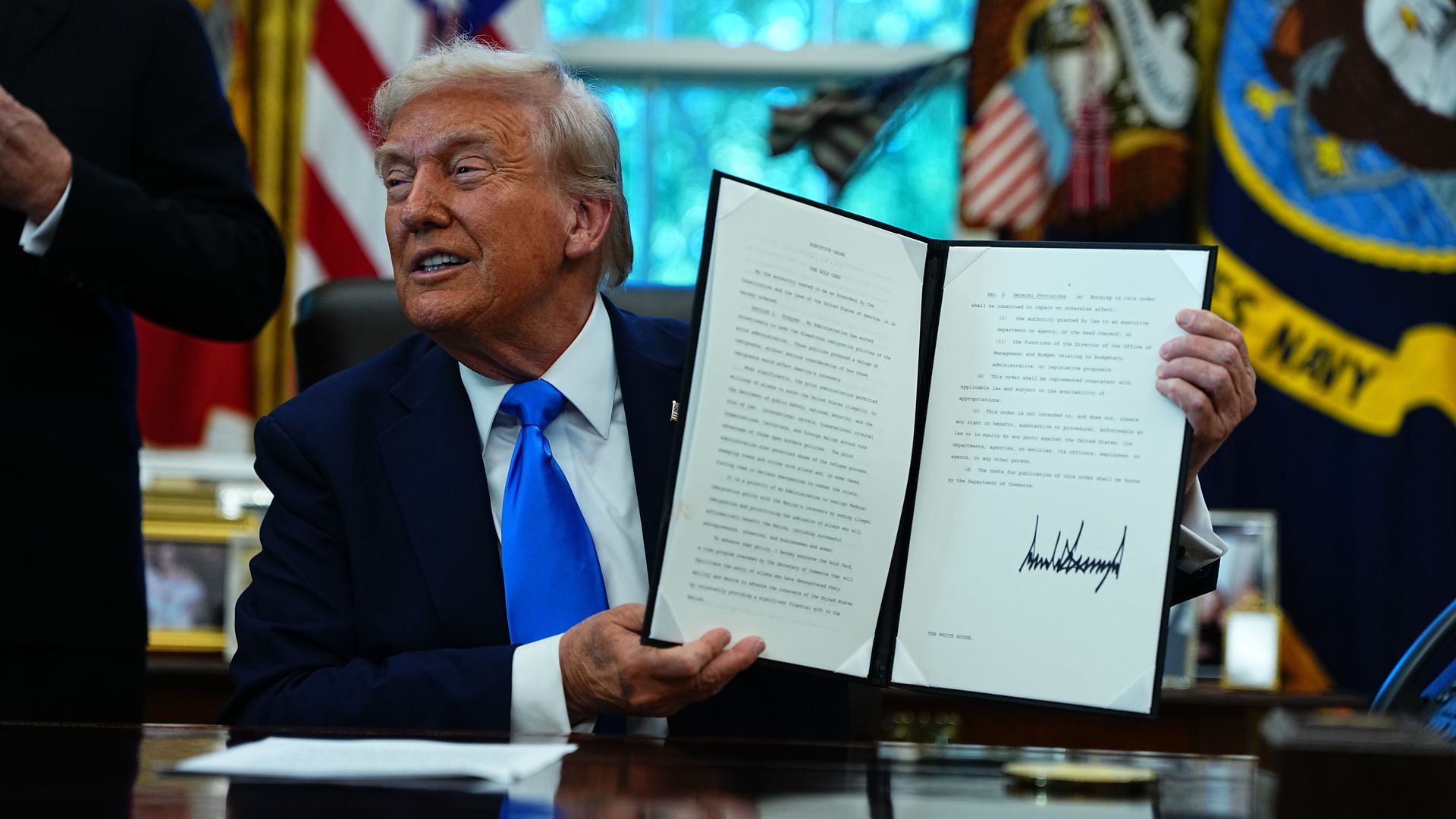 "Por la presente anuncio la Tarjeta Dorada, un programa de visados supervisado por el secretario de Comercio que facilitará el ingreso de extranjeros que hayan demostrado su capacidad y deseo de promover los intereses de los Estados Unidos proporcionando voluntariamente un importante regalo financiero a la Nación", reza un comunicado compartido por la Casa Blanca.