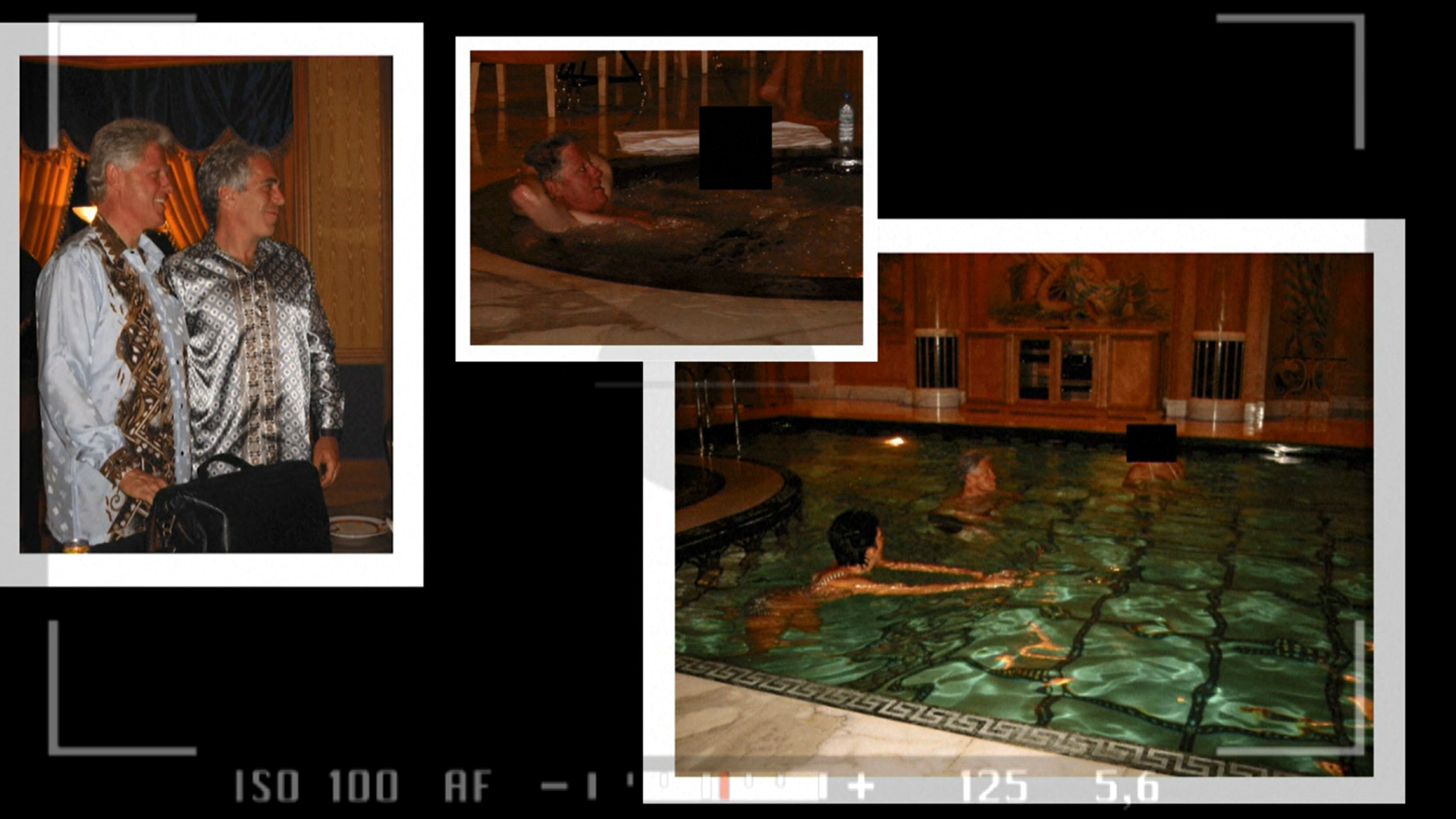 Clinton aparece en varias de las nuevas imágenes publicadas el viernes, entre ellas una en la que aparece flotando en una piscina de burbujas acompañado de una joven oculta tras el habitual rectángulo negro empleado para proteger identidades. En otra, está sentado en un avión privado con otra joven rubia, igualmente anónima, en su regazo.