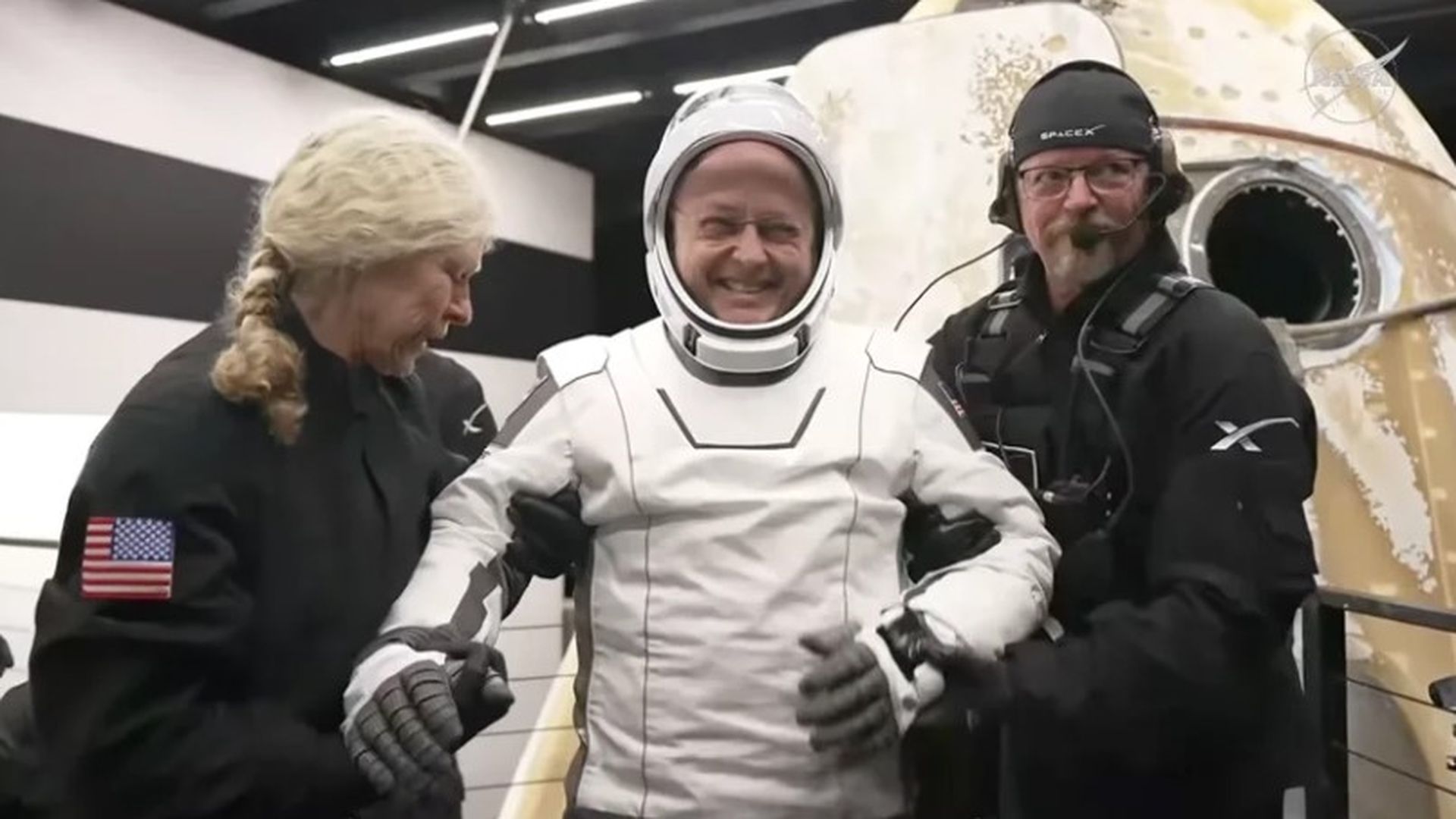 El astronaut Mike Fincke fue el primero en salir de la cápsula tras el amerizaje