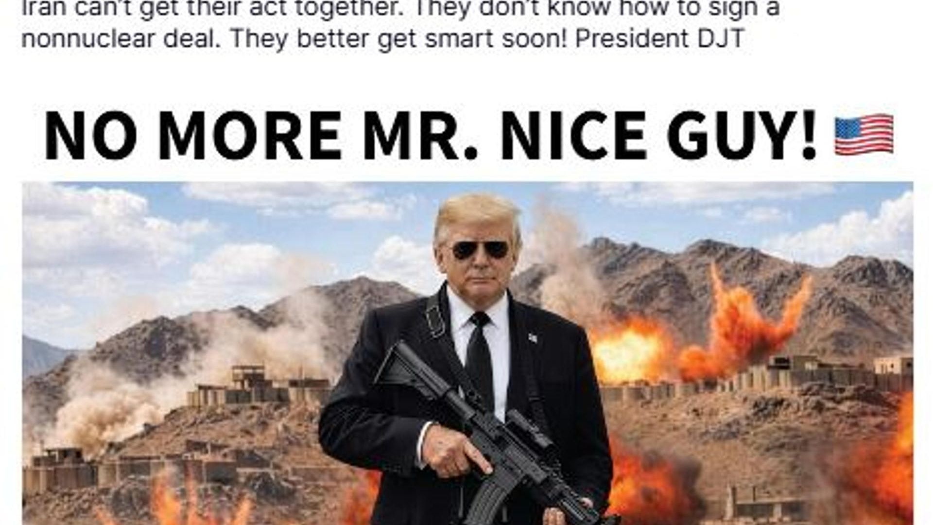 Trump, que la semana pasada extendió el alto el fuego con Teherán de manera indefinida, acompañó el mensaje de una imagen simulada en la que aparece armado y con gafas de sol, mientras varias explosiones suceden tras él, acompañada de la frase "¡NO MÁS SR. AMABLE!".