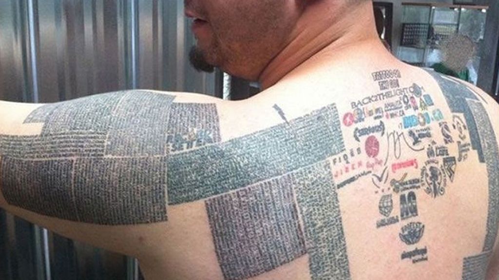 Según publica el Toronto Sun, este canadiense de 30 años de edad decició, tras el terremoto de Haití, recaudar dinero de forma original, tatuándose el cuerpo con URL's a cambio de un módico precio. Así, pidiendo algo de dinero a las empresas por dejar que se publiciten en su propia piel, Pat Vaillancourt ha conseguido 10.000 páginas web distintas en espalda y hombros y, con el dinero recaudado, ayudar a Haití y ahora a la lucha contra el hambre en Somalia.