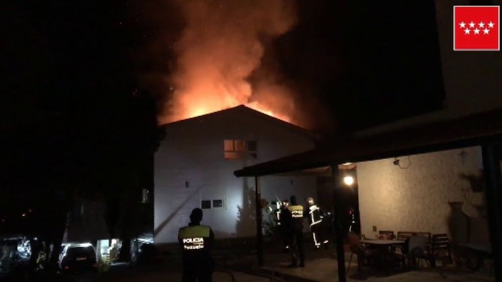 Los Bomberos extinguen un aparatoso incendio en un chalet de Pozuelo de Alarcón (Madrid)