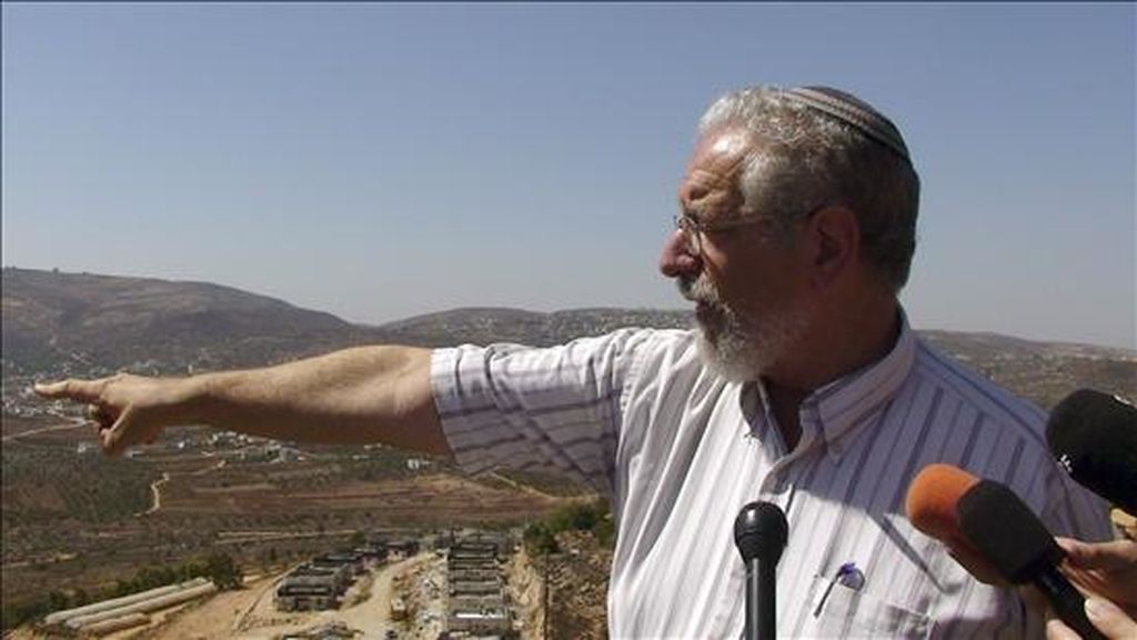 Israel Memad, de 63 años, residente en el asentamiento judio de Shiló, indica a un grupo de periodistas las poblaciones vecinas palestinas que se divisan desde la colina en la que vive. En vísperas de que el domingo concluya la moratoria a la construcción en los asentamientos judíos de Cisjordania adoptada por Israel, los colonos cuentan los días para volver a edificar. EFE