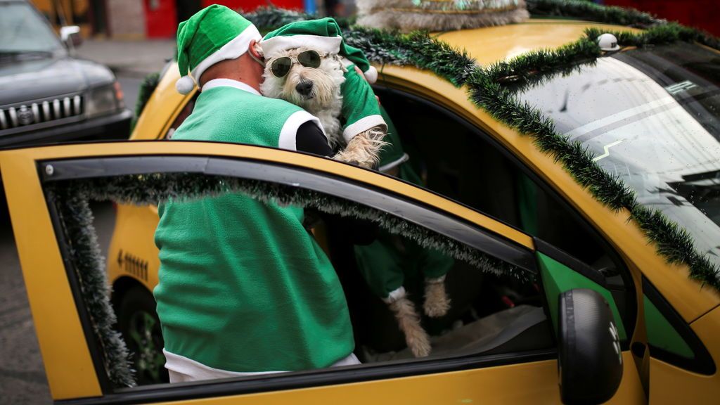 Coronel, el perro taxista disfrazado de Papá Noel.. REUTERS / Luisa Gonzalez