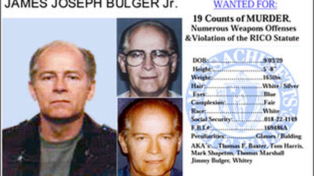 El FBI logró detener el miércoles en una vivienda de Santa Mónica (California) a James 'Whitey' Bulger, un conocido delincuente y confidente del FBI que figuraba en la lista de los diez más buscados por la agencia, la cual no hizo pública la detención hasta el jueves. Ahora se enfrenta a 19 cargos de asesinato, y otros por extorsión y conspiración.