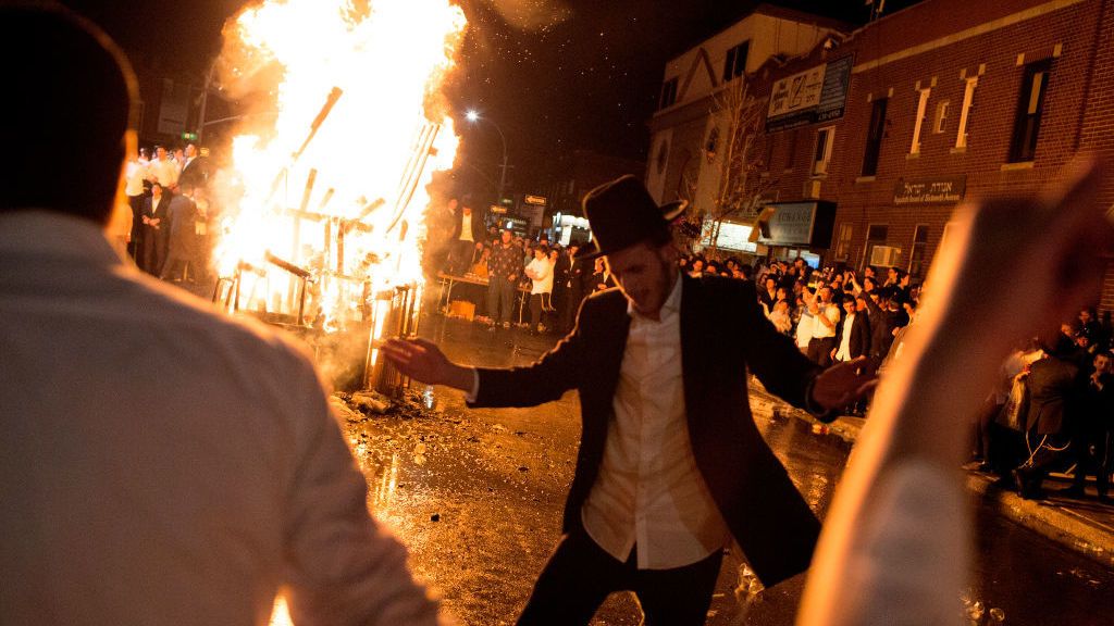 Un miembro de la comunidad jasídica de Nueva York celebra en 2018 la festividad de Lag Baomer. Getty Images