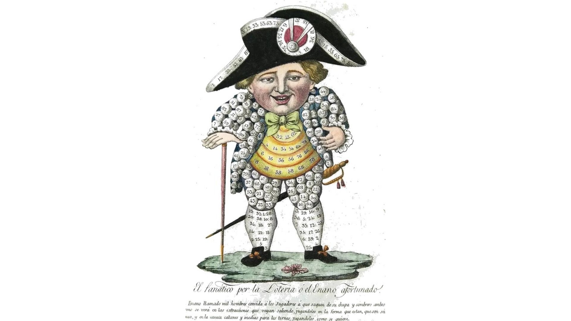 Una de las explicaciones más citada sobre el origen del nombre apunta a un personaje de anuncio. En 1839 aparece en manuales y carteles de lotería un hombre bajito, rechoncho, vestido con chaleco, calzones, medias y sombrero cubiertos de números, apodado “El enano afortunado” o “El fanático de la lotería”.