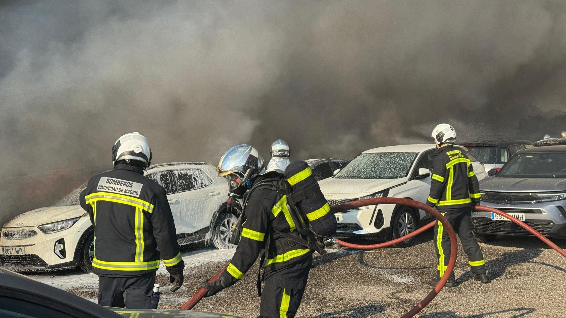 Los esfuerzos se concentraron en un primer momento en confinar el incendio en los vehículos ya afectados, que no afectara a más vehículos de la campa y que no se extendiera a una nave próxima que también podría haber salido ardiendo. Finalmente, se ha dado por controlado, según ha detallado Emergencias 112 Comunidad de Madrid.