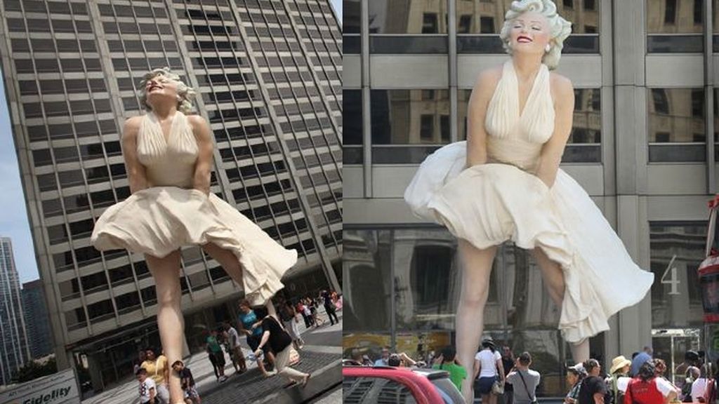 'Marilyn Forever', ha titulado el artista su obra que está provocando más de una dislocación de cuello. Los viandantes no han perdido la ocasión de mirar bajo las faldas de la escultura.