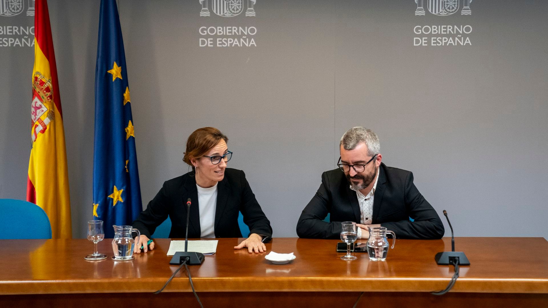 La ministra de Sanidad, Mónica García y el Secretario de Estado de Sanidad, Javier Padilla comparecen en una rueda de prensa. Europa Press