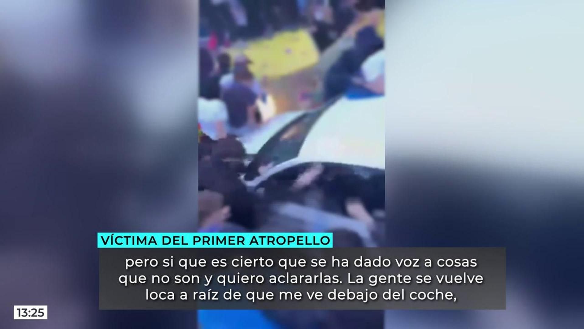 Esta víctima continua explicándonos: "Me encuentro atrapada, que no puedo salir, continué la fricción todo el rato porque la conductora acelera y es cuando se me empieza a quemar el brazo. Todos los aficionados que hay ahí, detienen el coche como pueden, son ellos los que realmente me salvan la vida, porque yo en ese momento solo oigo ruido, hay caos. La gente se vuelve loca porque intenta ayudarme a salir de ahí, y por eso para coche. Una vez me sacan, luego ya viene otra embestida y otros atropellos que yo no vi porque evidentemente, no estaba consciente".