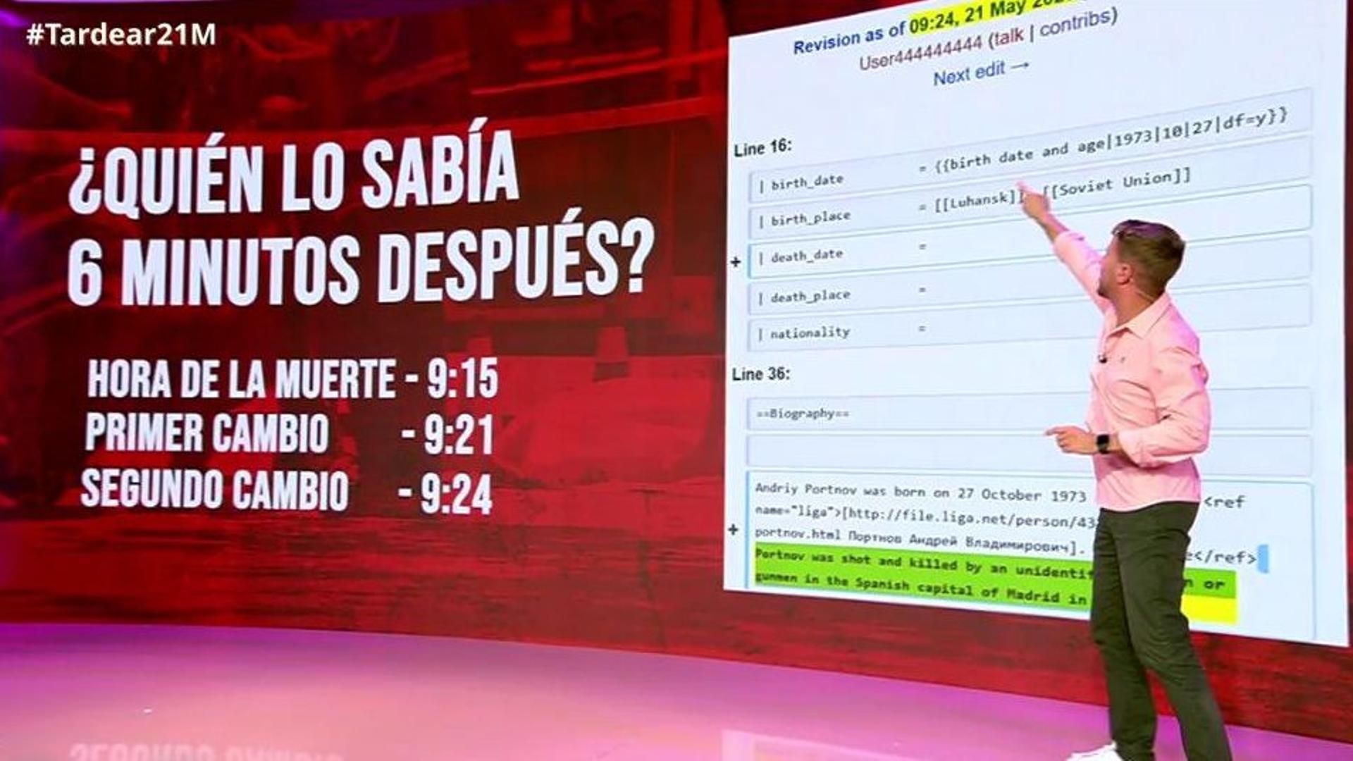 Alejandro Rodríguez, periodista de 'Tardear', ha podido descubrir un dato clave en la investigación del crimen de Andréi Portnov, el exasesor ucraniano prorruso que ha sido tiroteado en Pozuelo de Alarcón. Wikipedia ha identificado a la víctima del asesinato antes que la policía.