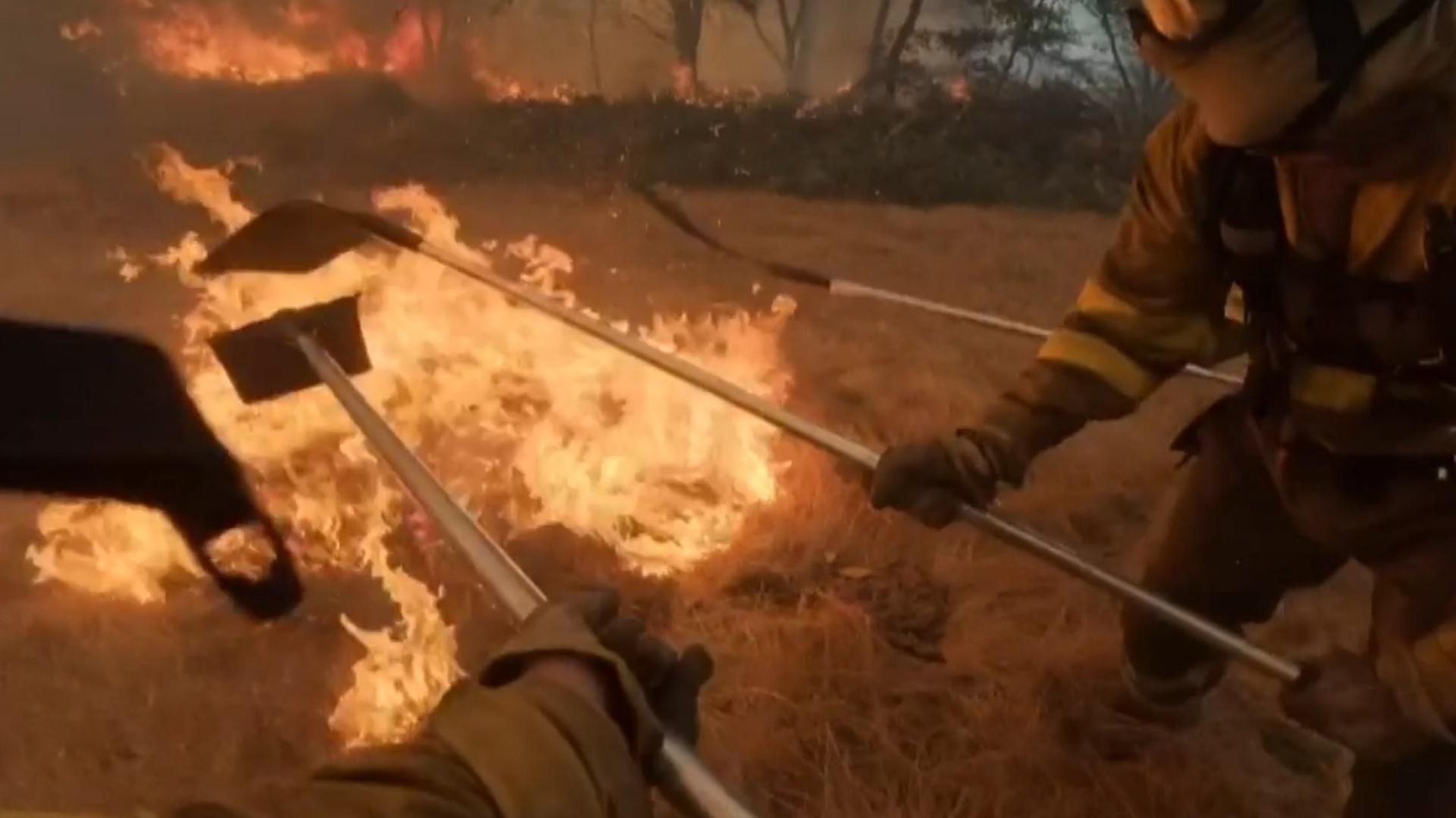 La lucha de los bomberos contra la oleada de incendios en España, vista en un vídeo en primera persona