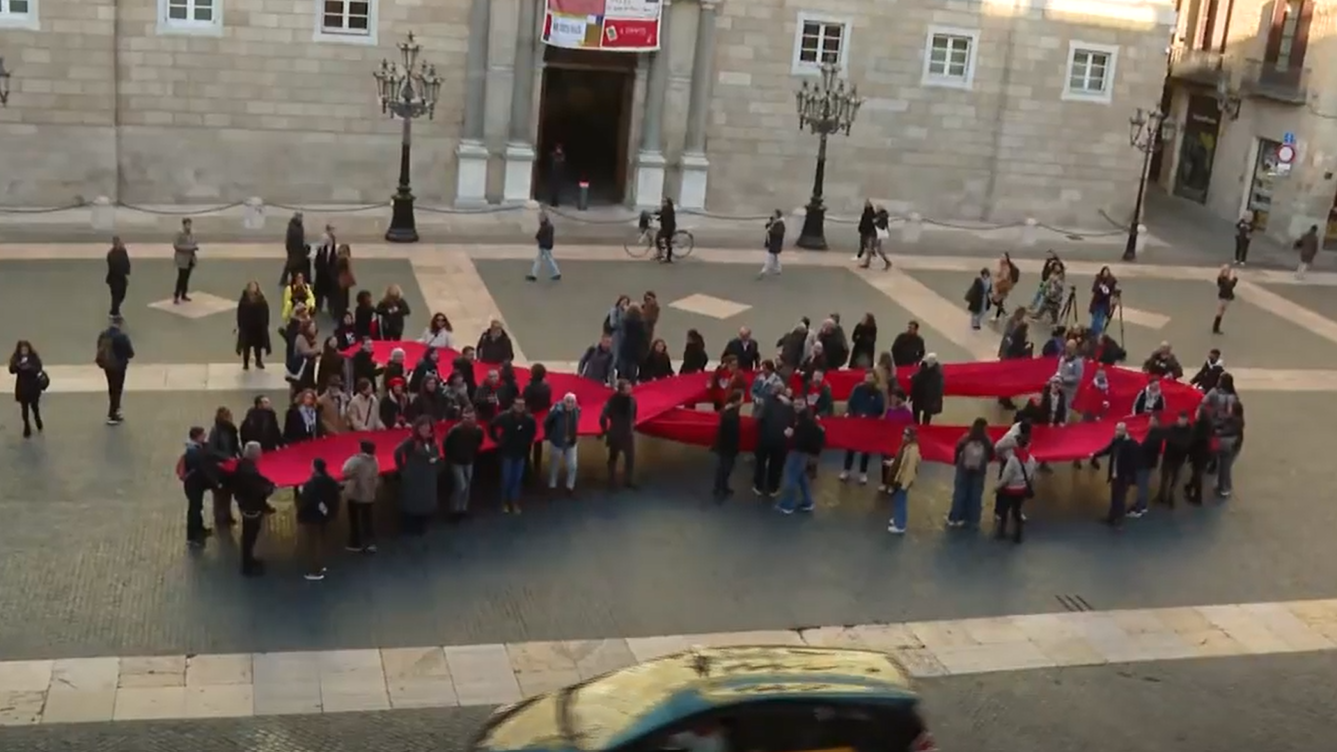 Se ha extendido un lazo en Barcelona en honor al Día Internacional del VIH. Informativos Telecinco
