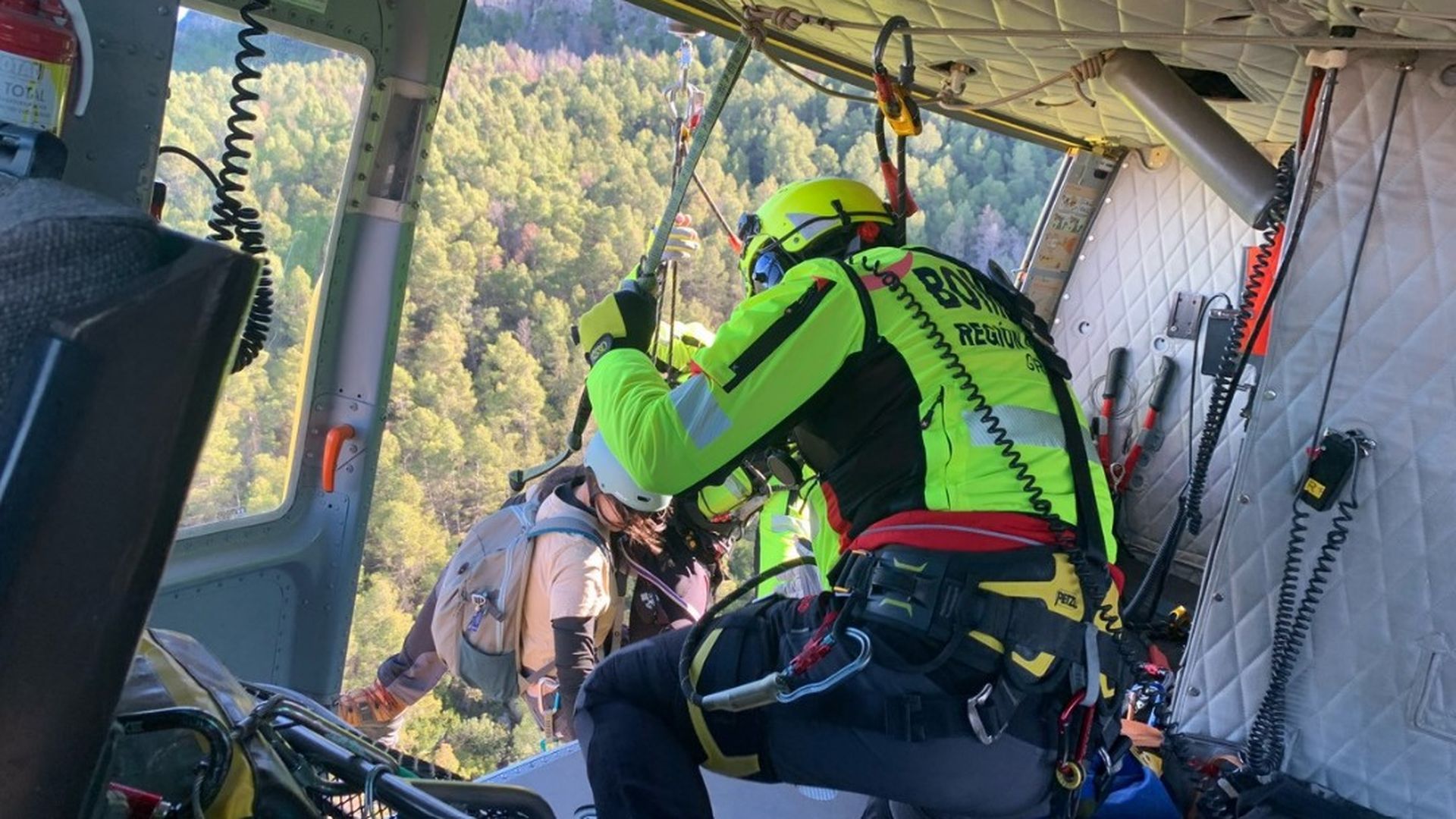 Al lugar se movilizaron patrullas de la Policía Local, Guardia Civil, agentes medioambientales y el helicóptero de la Dirección General de Seguridad Ciudadana y Emergencias con bomberos del Grupo de Rescate Aéreo Especializado del CEIS.