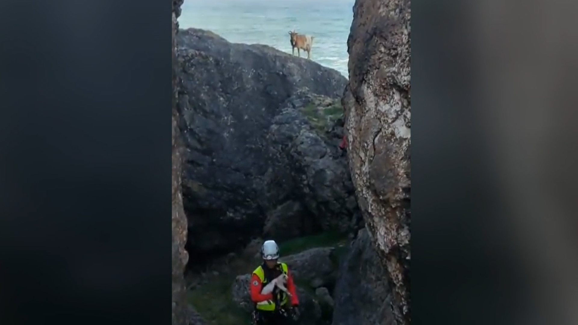 Los bomberos rescatan a dos cabras en un acantilado de Cantabria. Informativos Telecinco