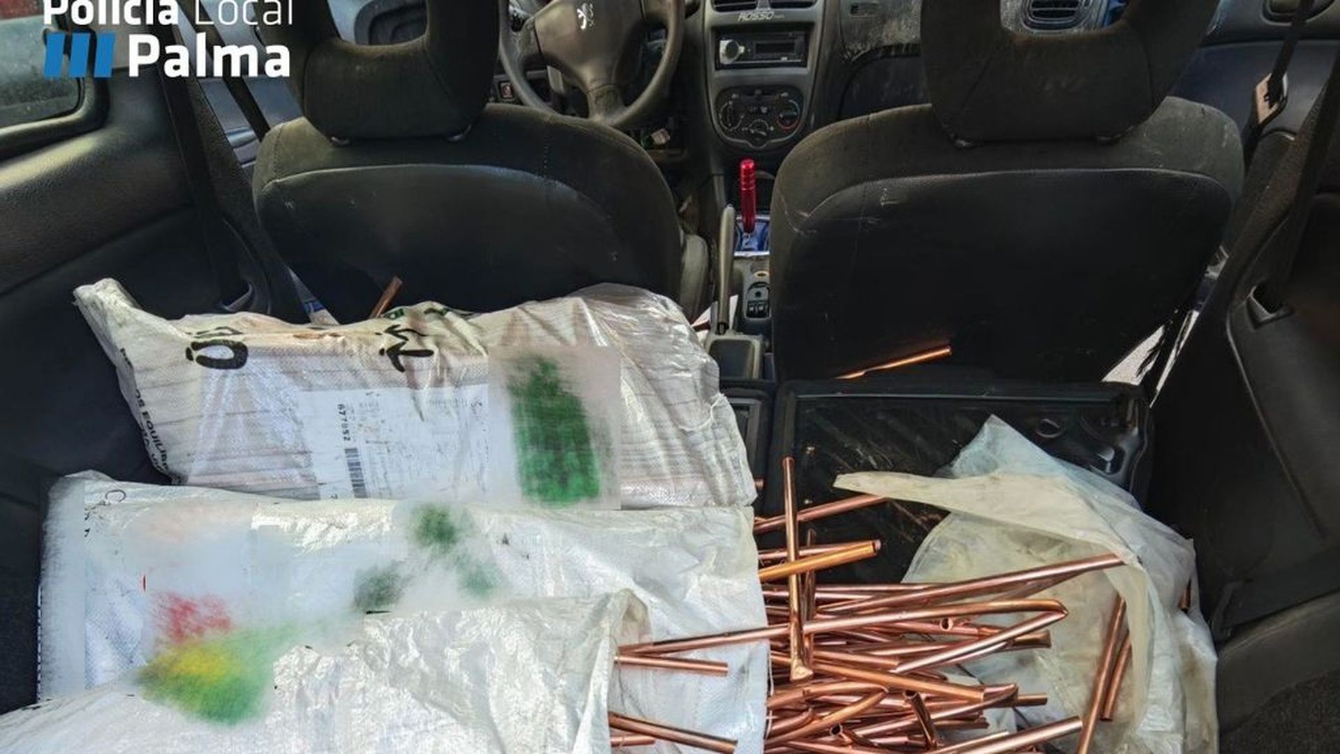 El sospechoso aprovechó el momento para huir a pie. En el registro del coche abandonado, los agentes hallaron una riñonera con el DNI del implicado y cuatro sacos con una gran cantidad de cobre, pasamontañas, patas de cabra y diversas herramientas.