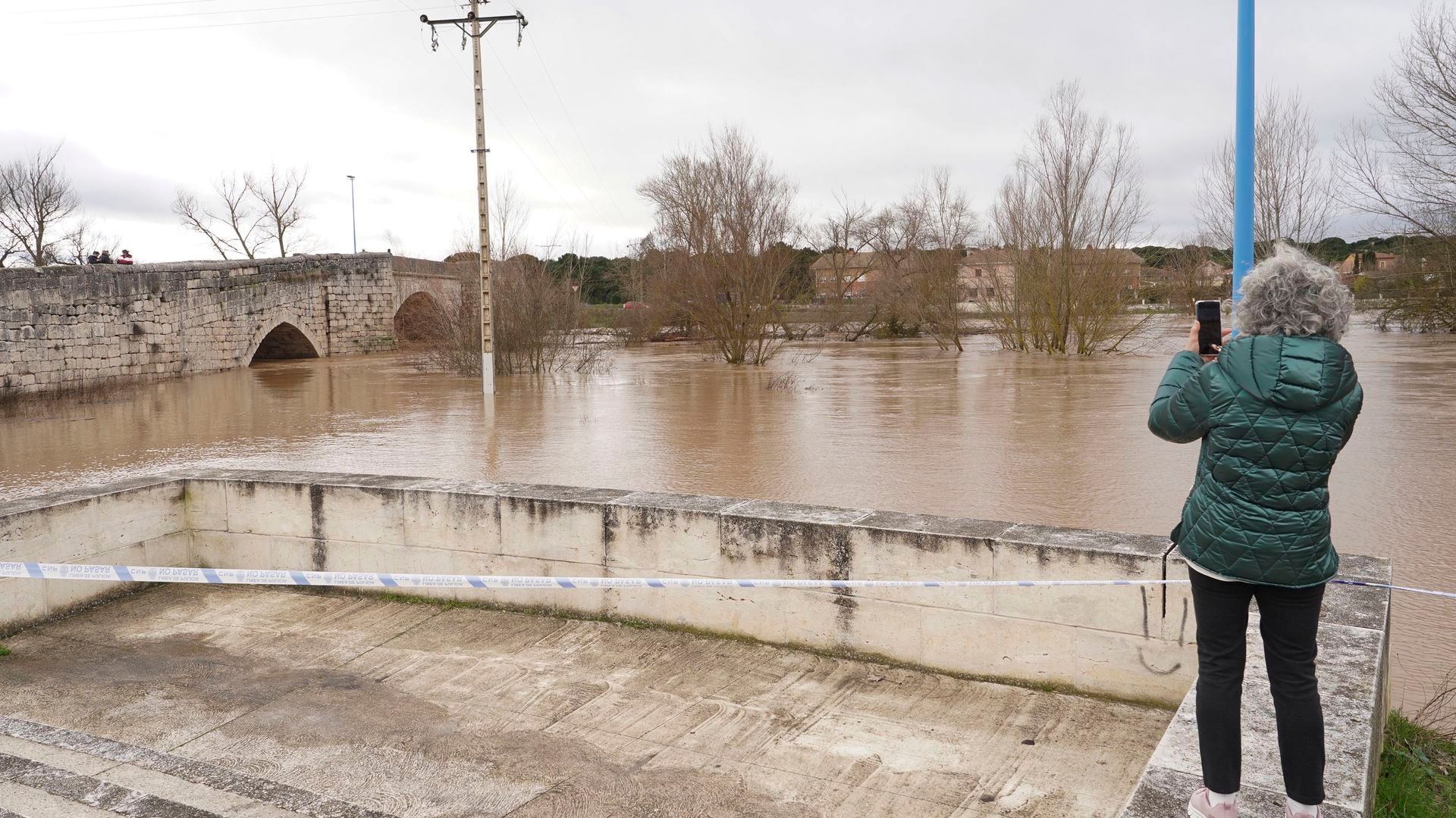 Una mujer fotografía el río Duero a su paso por la localidad vallisoletana de Puente Duero