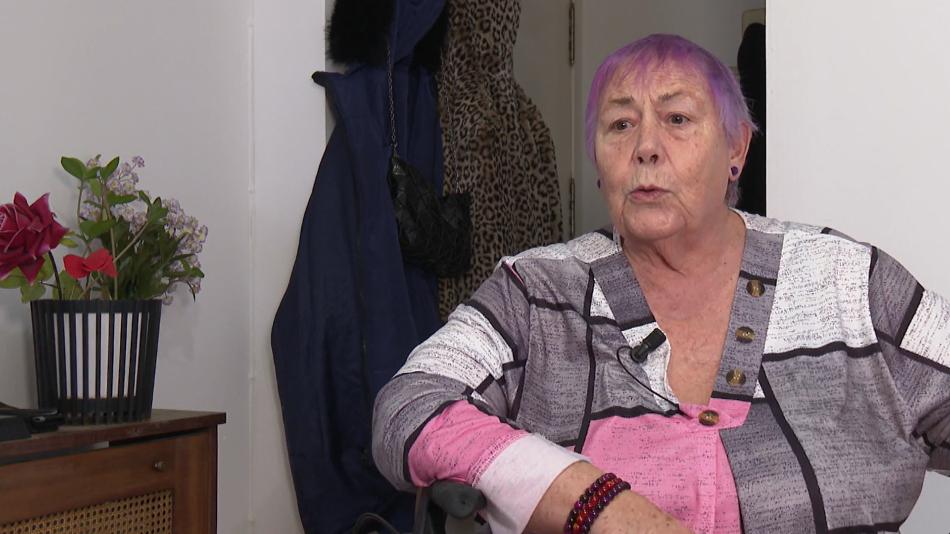 Paca, de 77 años, nos recibe en su casa. Ojos vivarachos, pelo morado, con pendientes a juego, necesita un andador porque tiene una minusvalía del más del 60%. Es rápida en su discurso y tiene prisa. Ha quedado a celebrar su cumpleaños, sus 77 vividos intensamente, en una chocolatería del barrio.