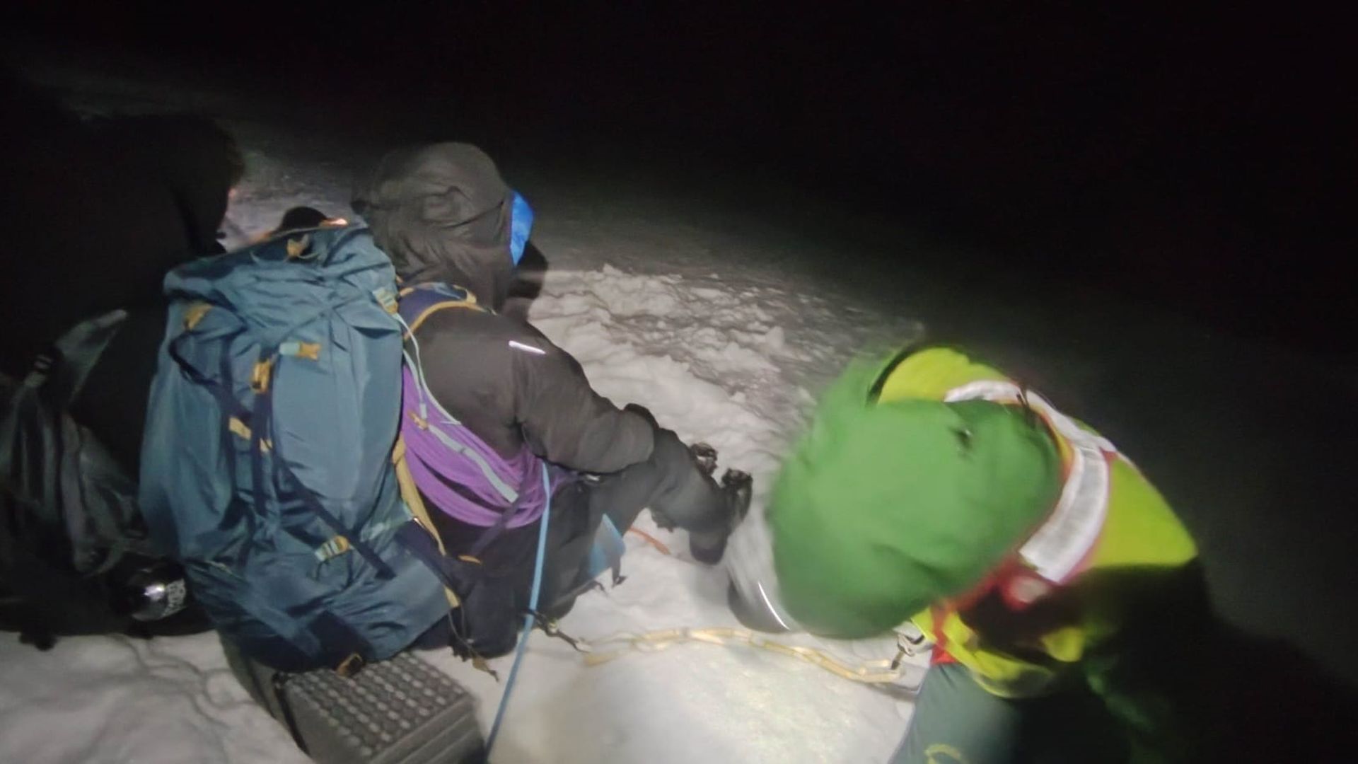 Los jóvenes tuvieron la suerte de que uno de ellos pudo frenar al grupo con un piolet, por lo que quedaron colgados sin poder moverse