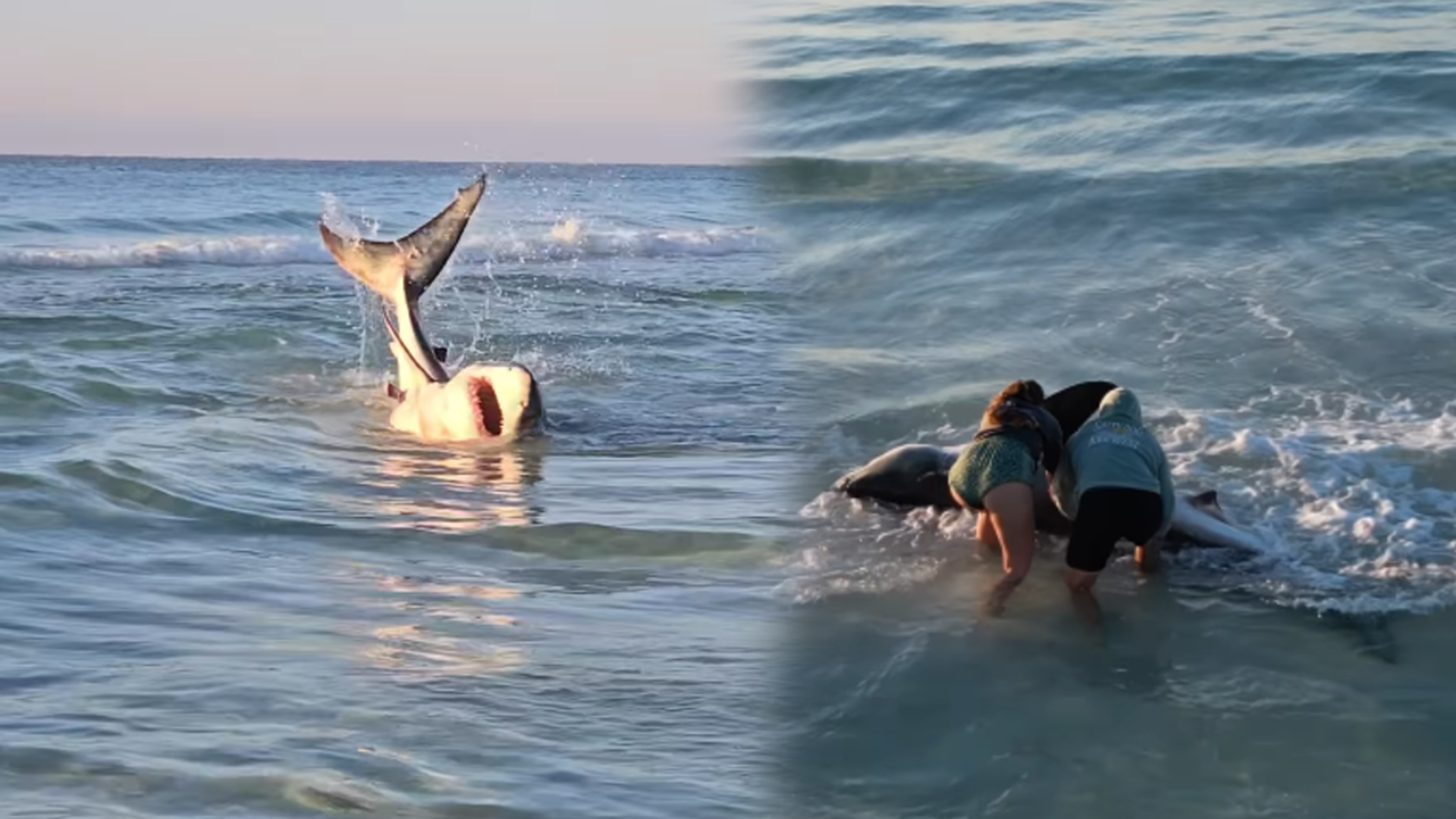 Un grupo de bañistas salva a un tiburón varado en la orilla de una playa de Florida