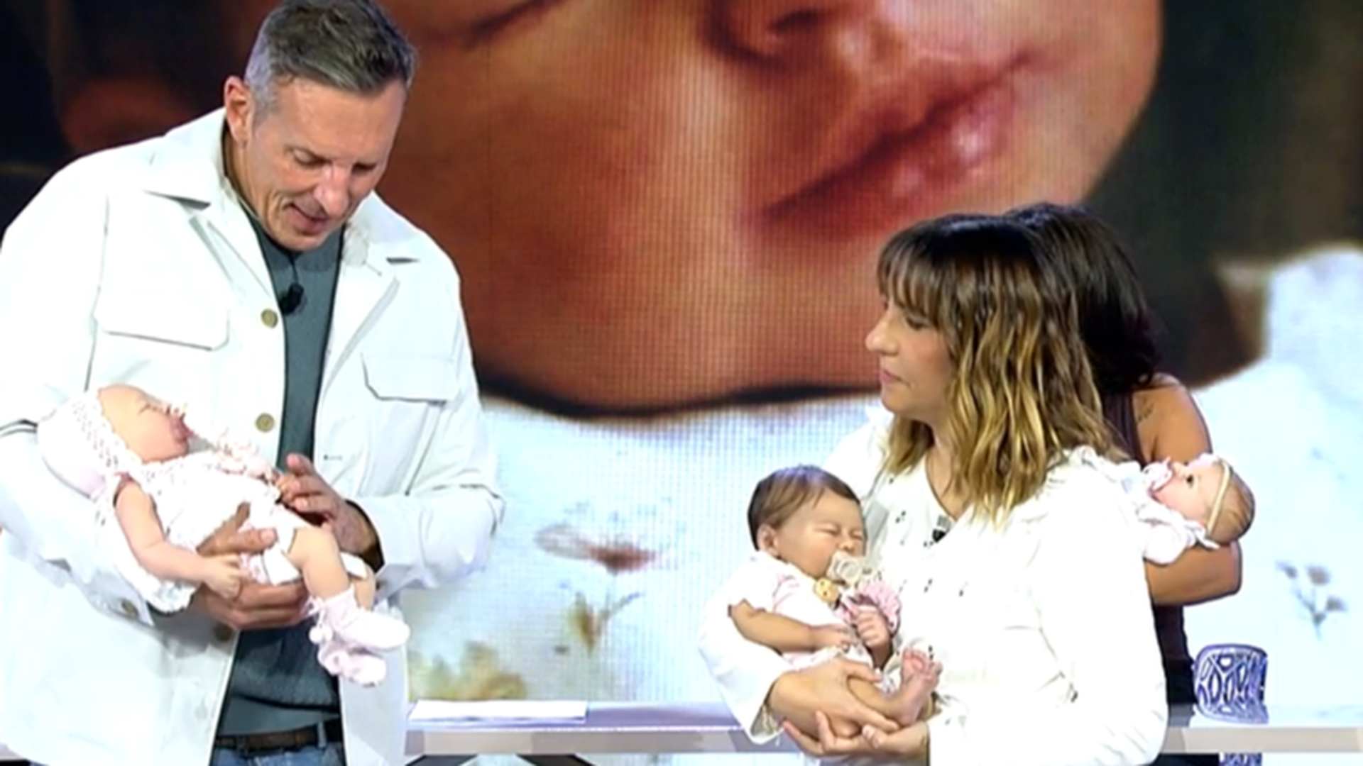 Sandra Guerrero, artesana de bebés hiperrealistas, visita el plató de 'El tiempo justo' y explica quién es el público objetivo de estos bebés: "Una madre, un padre o una niña, los padres los compran también para sus hijas".