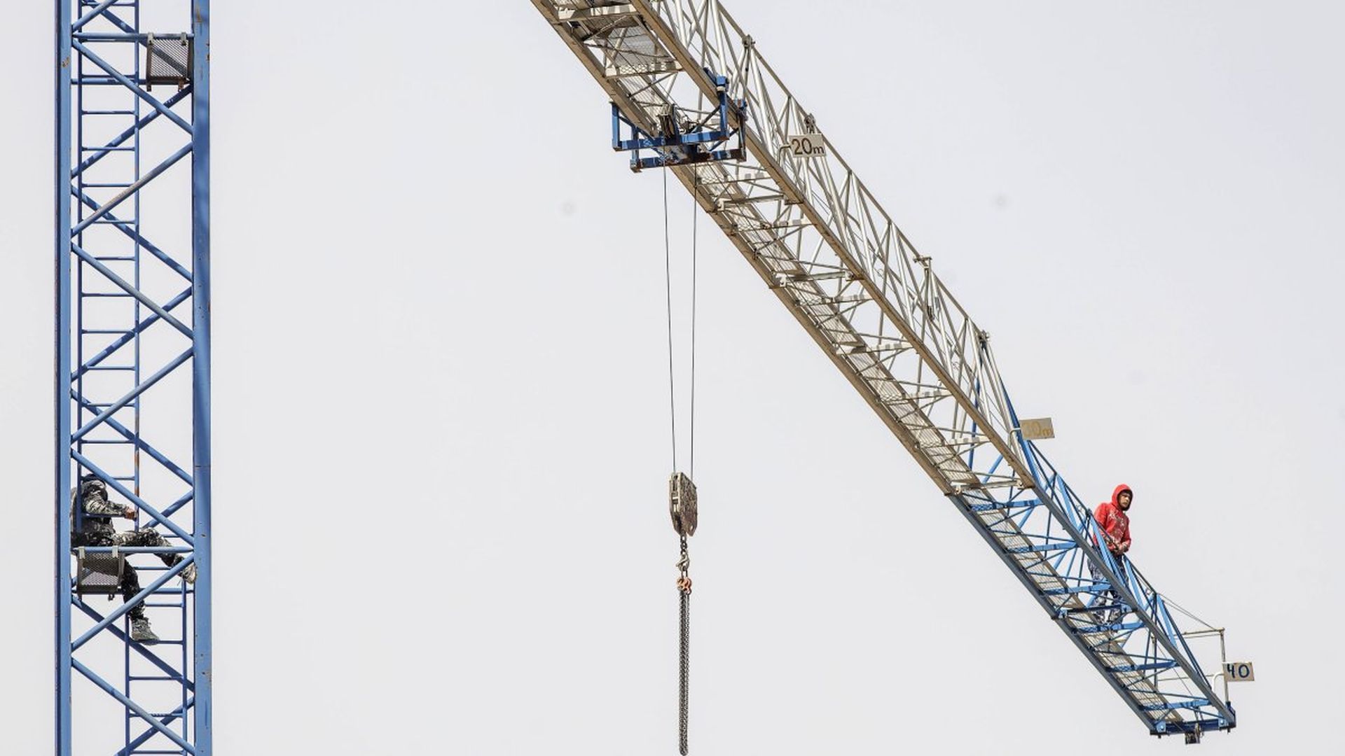 BurgosDurante casi tres horas de incertidumbre y tensión han permanecido subidos a una grúa dos trabajadores del sector de la construcción para exigir el pago de sus salarios en Burgos.