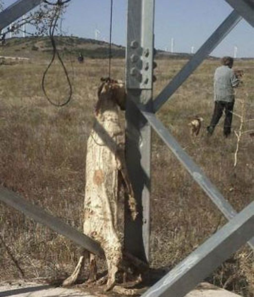 El perro tenía las patas traseras apoyadas al suelo, lo que indica  que sufrió "un horror antes de morir", ha informado Justicia Animal. Foto: EFE.