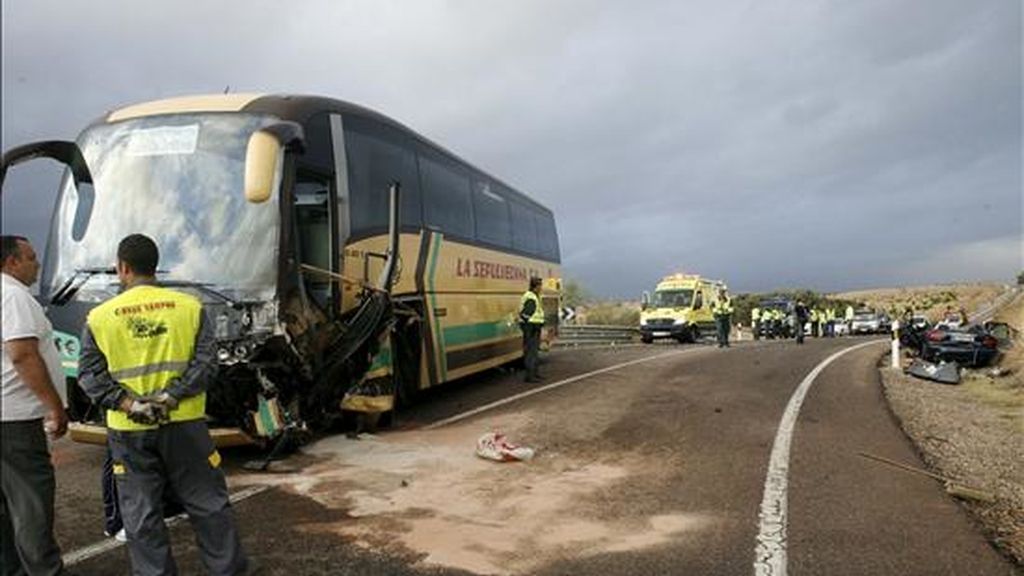 Según ha podido comprobar Efe, el accidente ha tenido lugar en una curva, en una zona de línea continua, donde, al parecer, el turismo ha invadido el sentido contrario y se ha empotrado contra el autobús.
