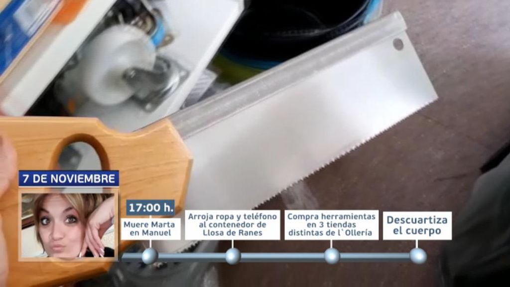 Volvió a conducir a tres pueblos distintos para comprar bolsas y guantes en un supermercado, ácido en un centro comercial y los serruchos en una ferretería de Lollería. De vuelta, se quitó la ropa y en hora y media descuartizó el cadáver de Marta.