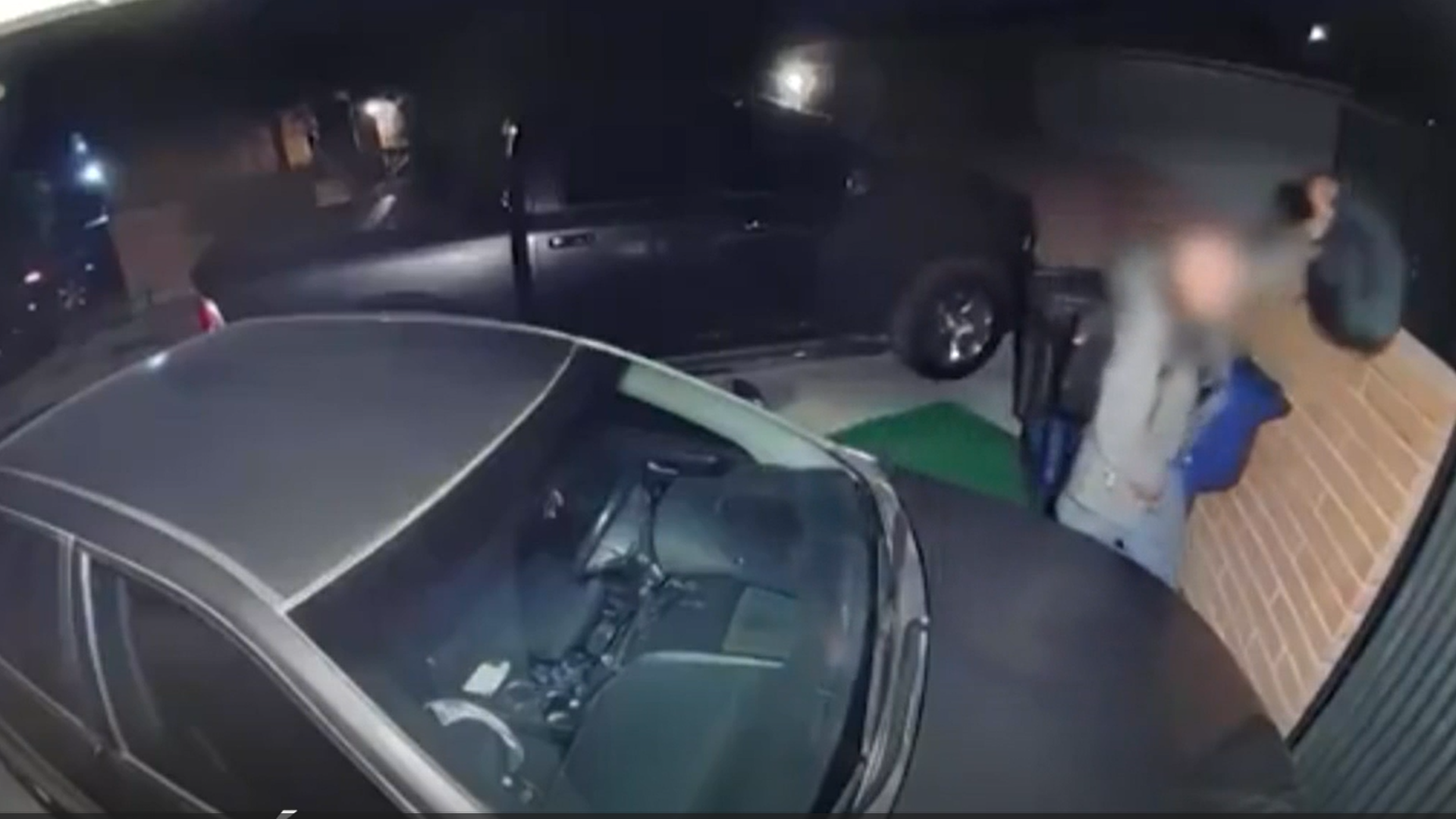 Las autoridades también están revisando otro video de seguridad que muestra a una persona con una gorra de béisbol y una mochila negra tirando de la manija de la puerta de un auto frente a una casa en el vecindario la mañana del 1 de febrero.